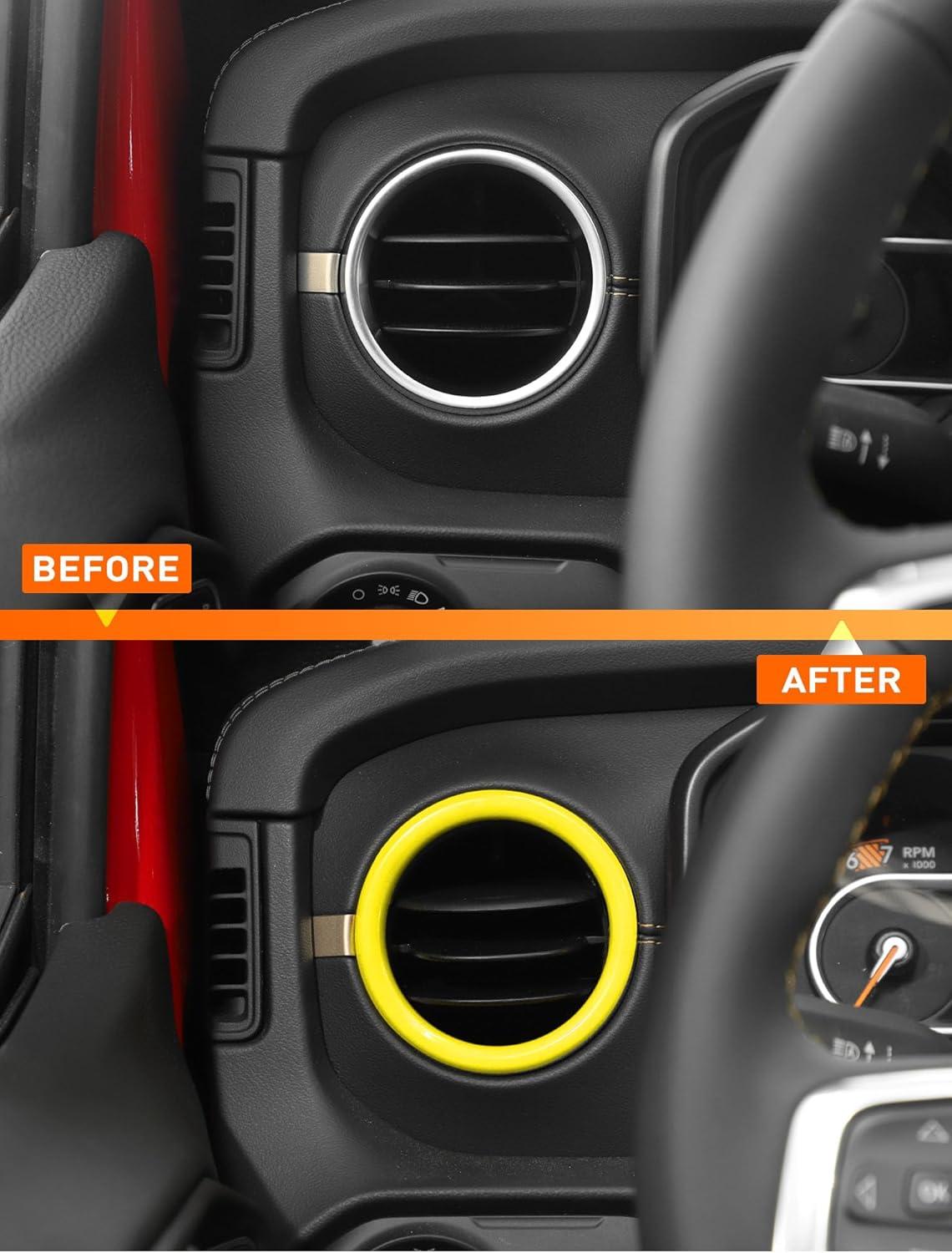 Savadicar HVAC Air Vent Trim Covers for 2024+ Jeep Wrangler (JL) & Gladiator (JT) – Upgrade Your Ride Style with 2 Pcs Aluminum Alloy Dashboard AC Vent Accents, Premium Interior Accessories, Orange(Yellow)