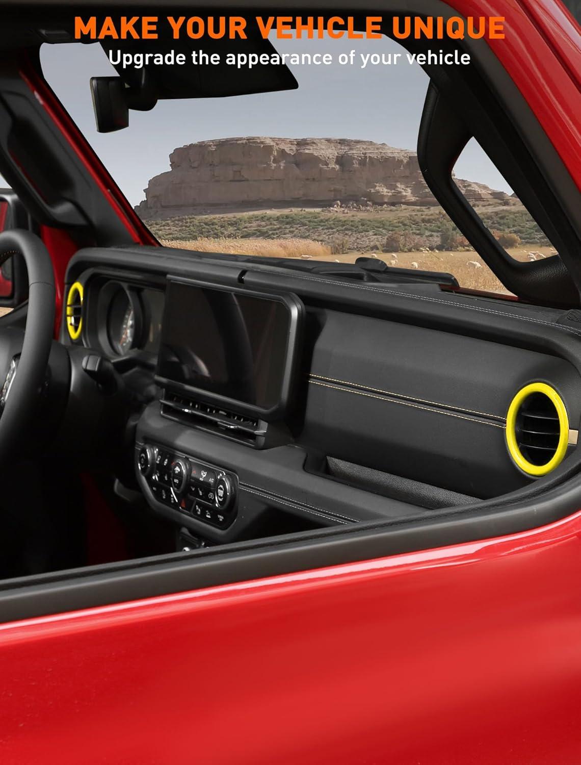 Savadicar HVAC Air Vent Trim Covers for 2024+ Jeep Wrangler (JL) & Gladiator (JT) - Upgrade Your Ride Style with 2 Pcs Aluminum Alloy Dashboard AC Vent Accents, Premium Interior Accessories, Orange(Yellow)