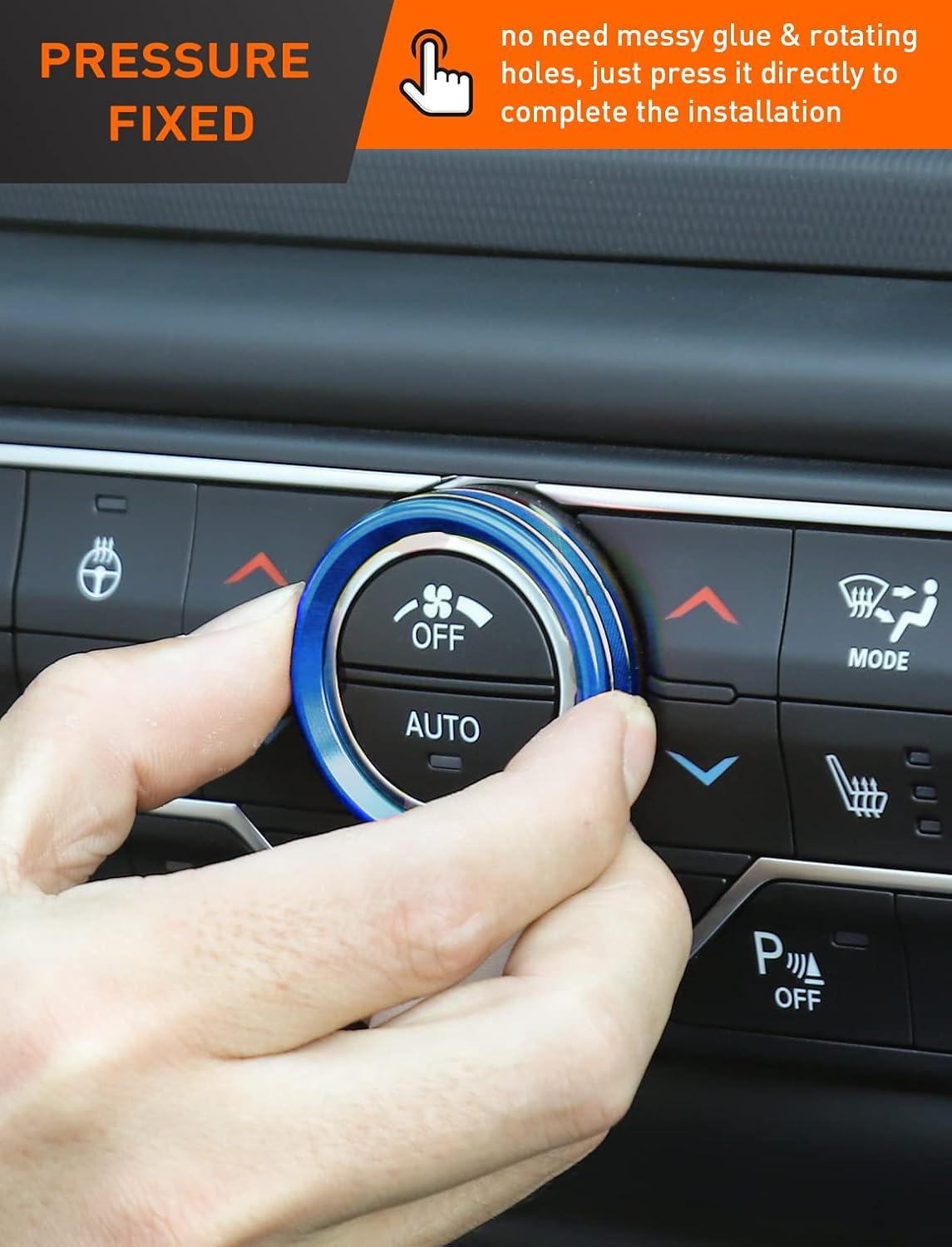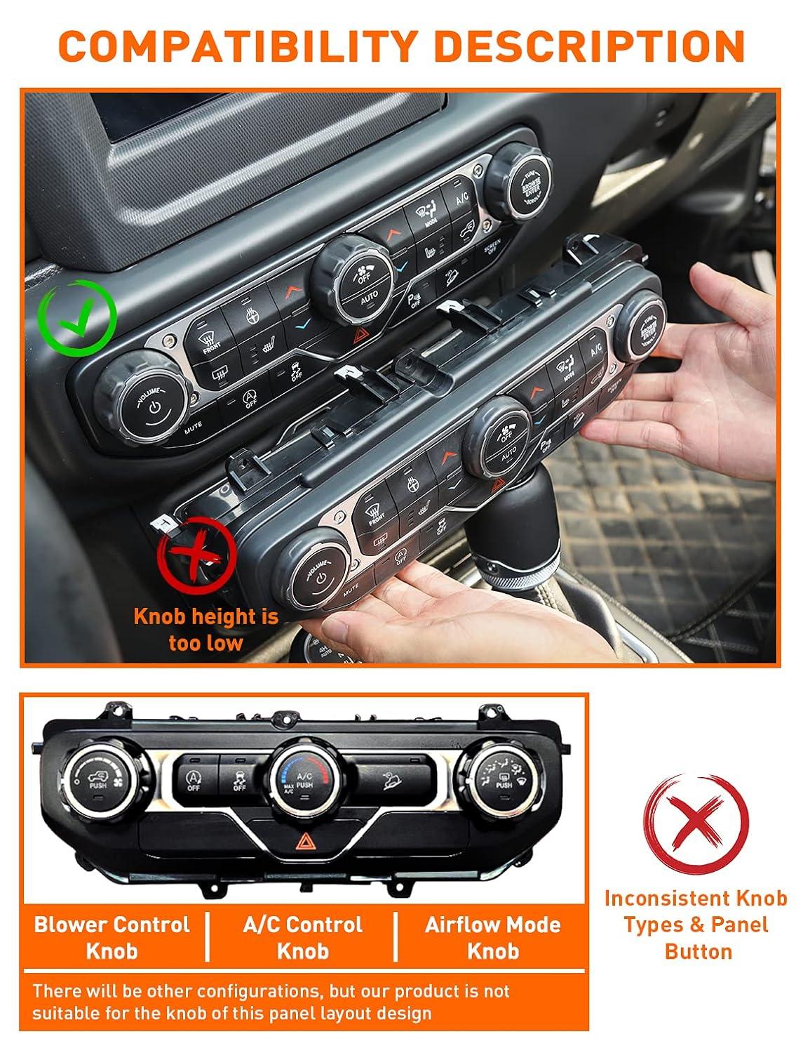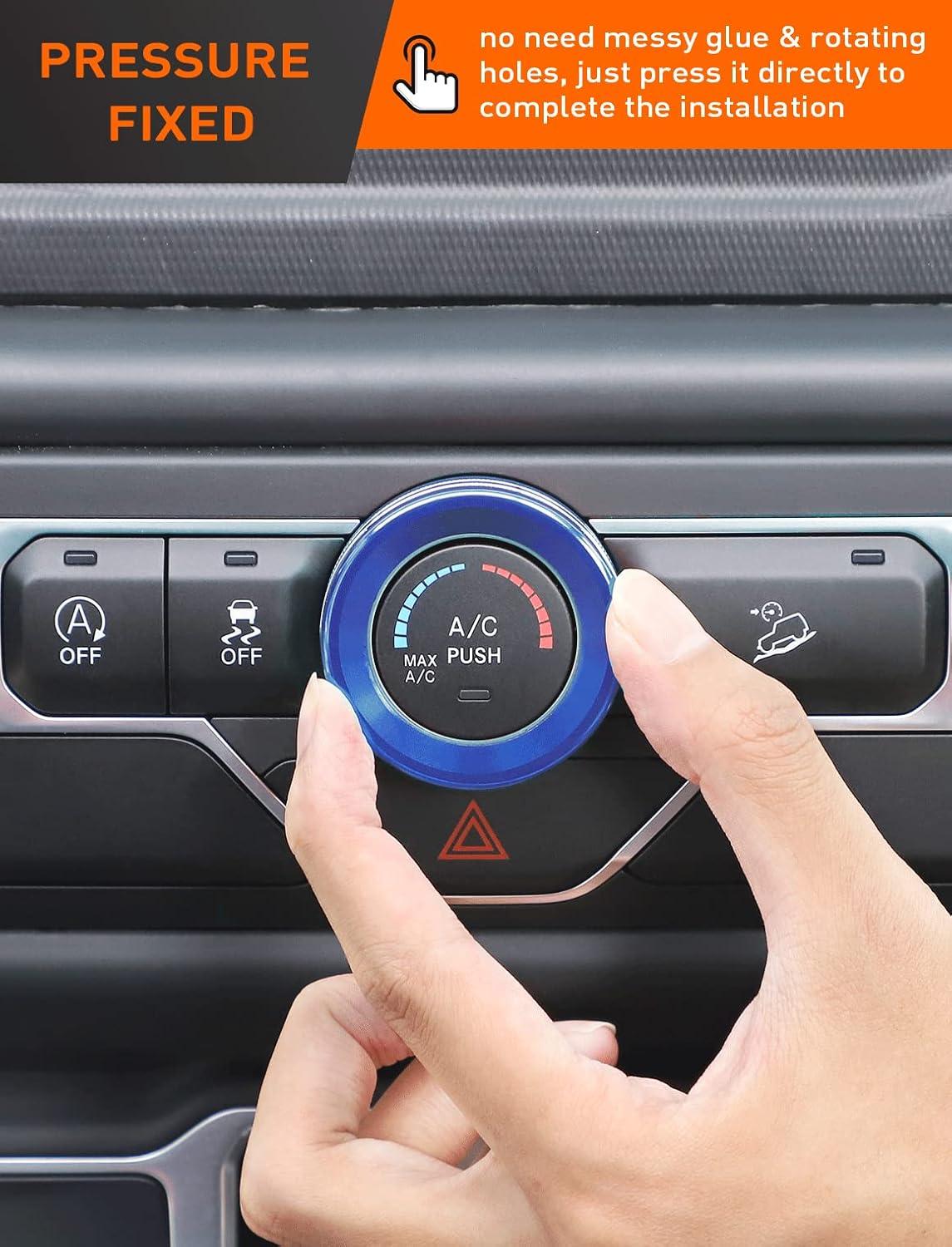 🔧 SIMPLE INSTALLATION — Unlike other jeep interior trim kits that use glue and drill holes for installation, Savadicar climate control knob ring cover adopts a snap-in installation method, which relies on the occlusal force and friction of the knob itself to fix it, simply pressing this jeep gladiator accessories can be completed installation, no need any tools.