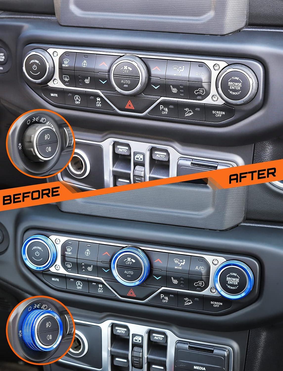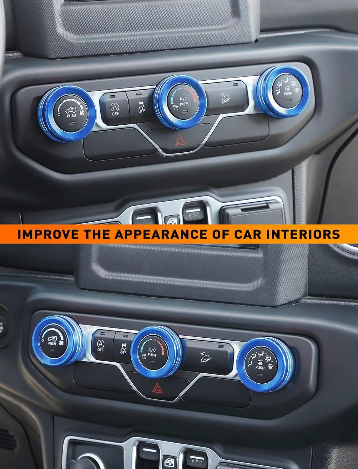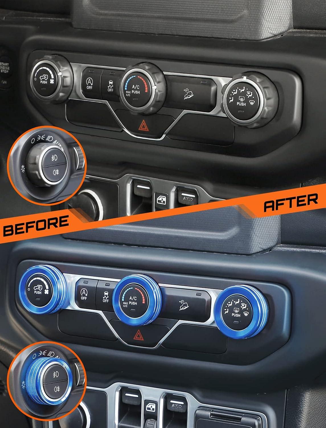 🔧 UPGRADING THE INTERIOR — Set the look of your interior apart from the crowd for your jeep wrangler jl jlu or gladiator jt with the dynamic burst of color Savadicar climate control knob & light switch cover provides. Add a great pop of color to your interior to match your jeep interior style.