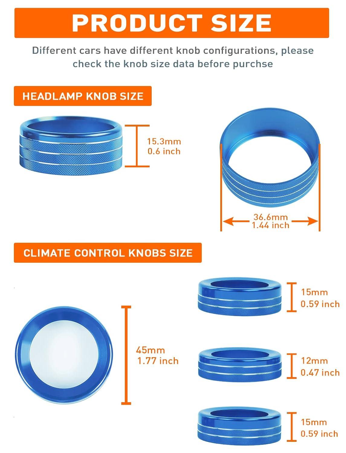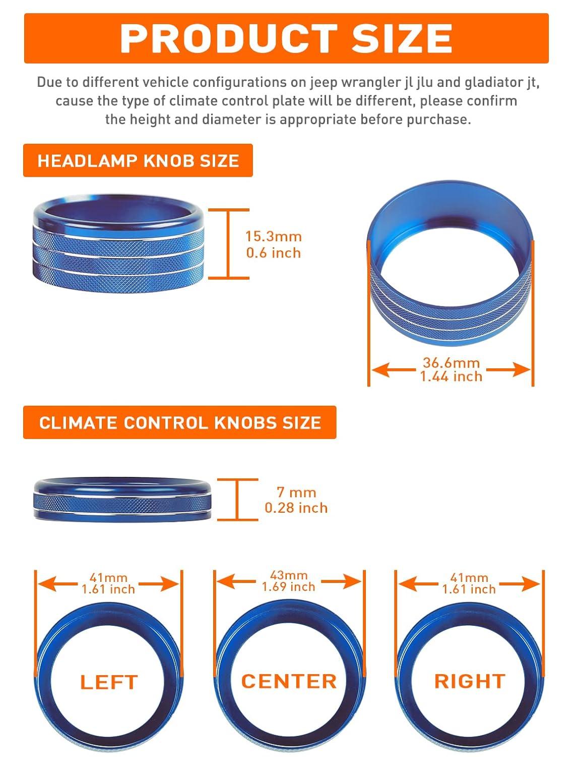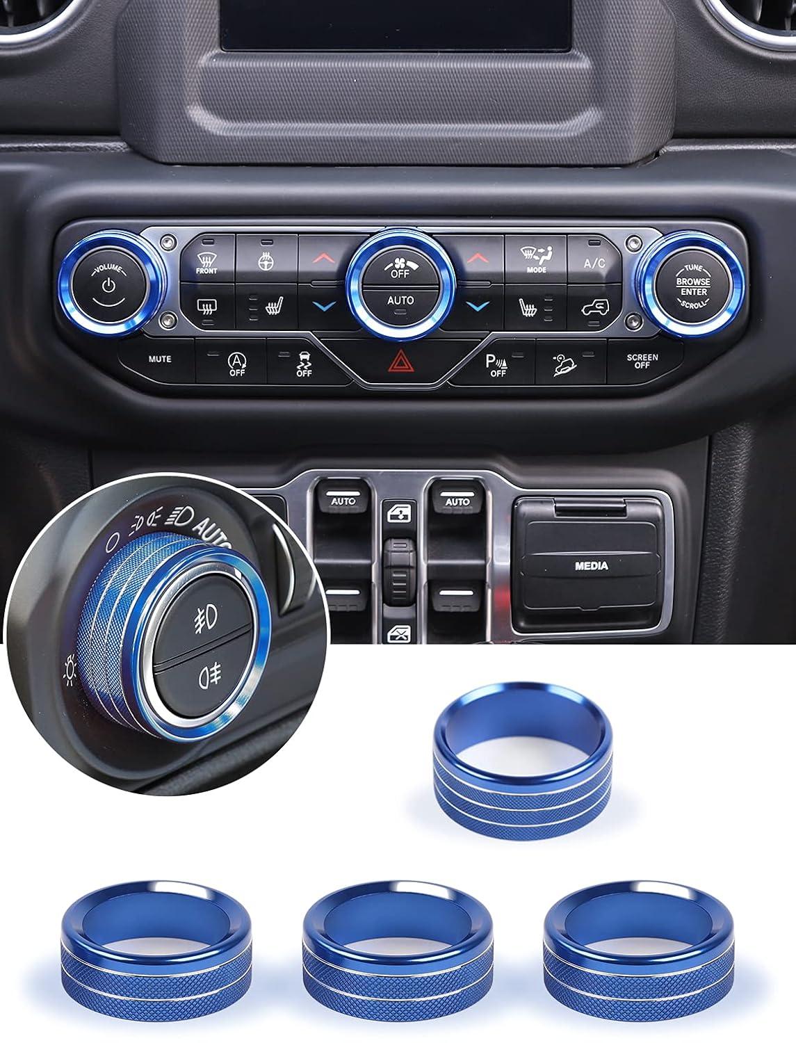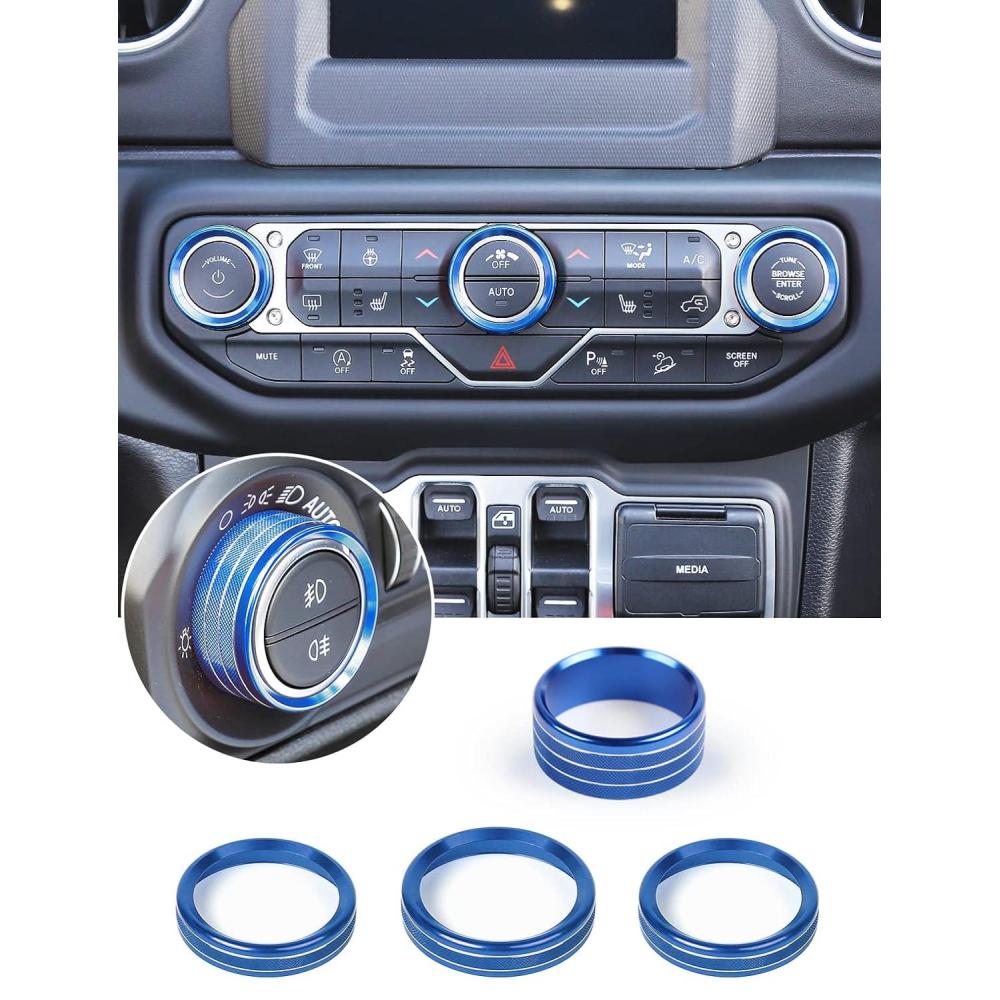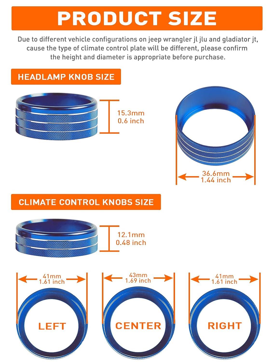 Savadicar HVAC Climate Control Panel Knob Trim Kit & Light Control Switch Cover, Air Conditioner Knob Aluminum Alloy Ring for 2018-2025 Jeep Wrangler JL JLU & Gladiator JT, Interior Accessories,Orange(Blue)