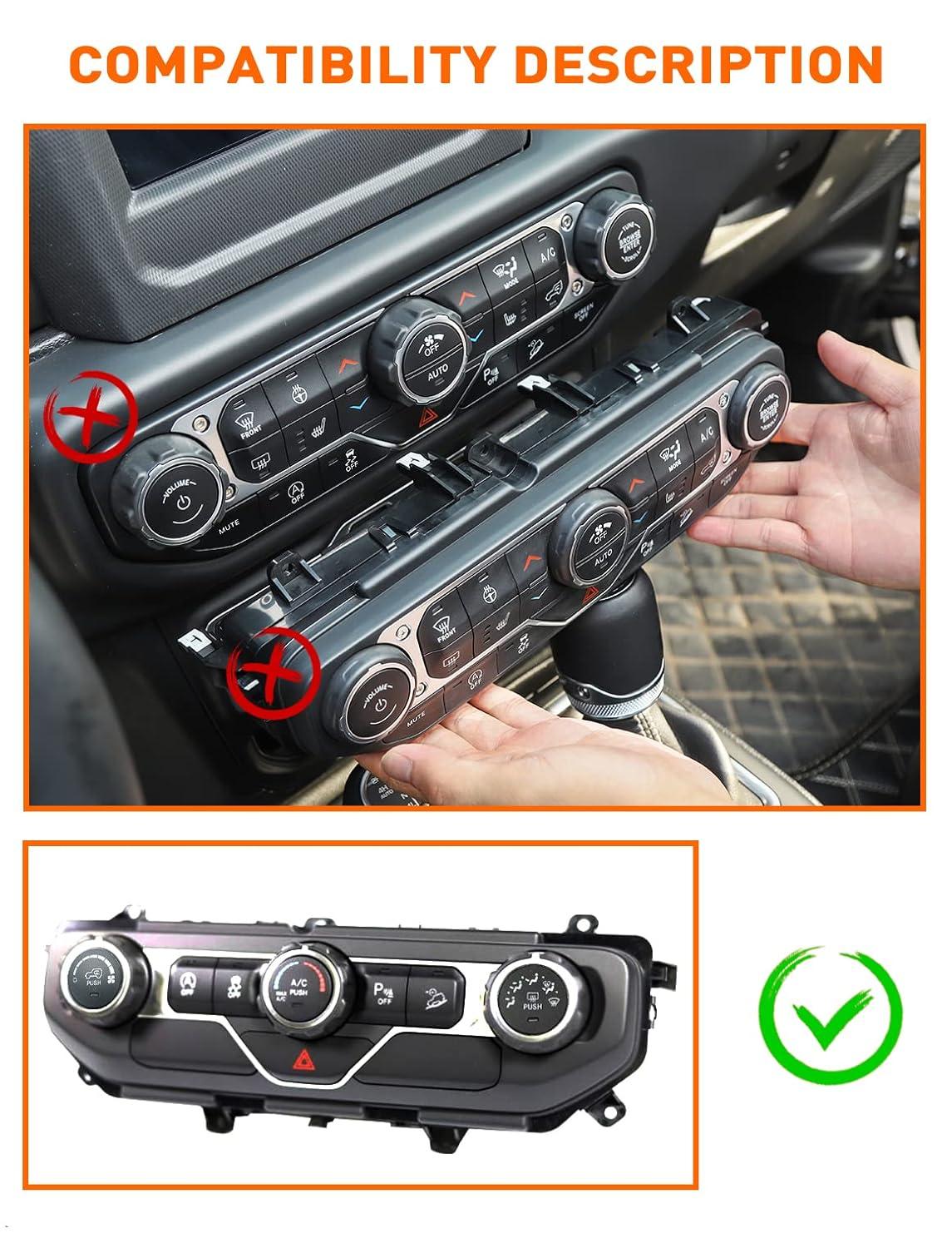 🔧 PERFECT FIT — Specially designed according to the CAD data of original factory center stack knobs, Savadicar air conditioner & light control knob trim kit is perfect fit for 2018 2019 2020 2021 2022 2023 2024 2025-Present Jeep Wrangler JL JLU & Gladiator JT 2-door and 4-door.