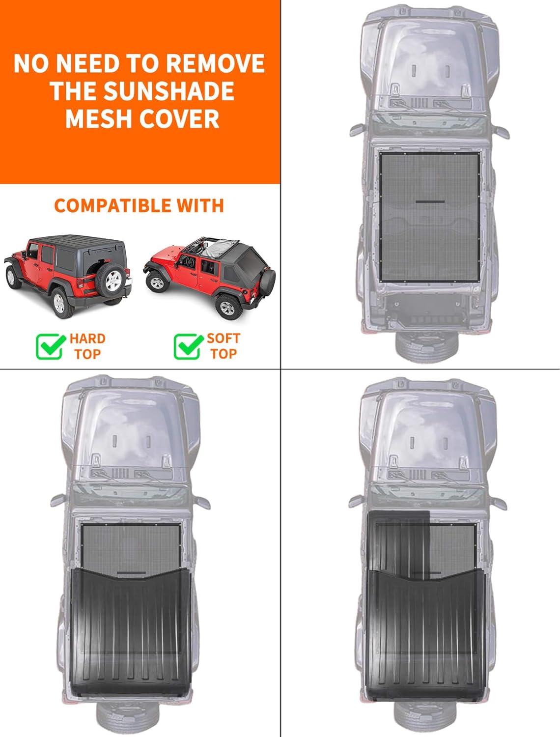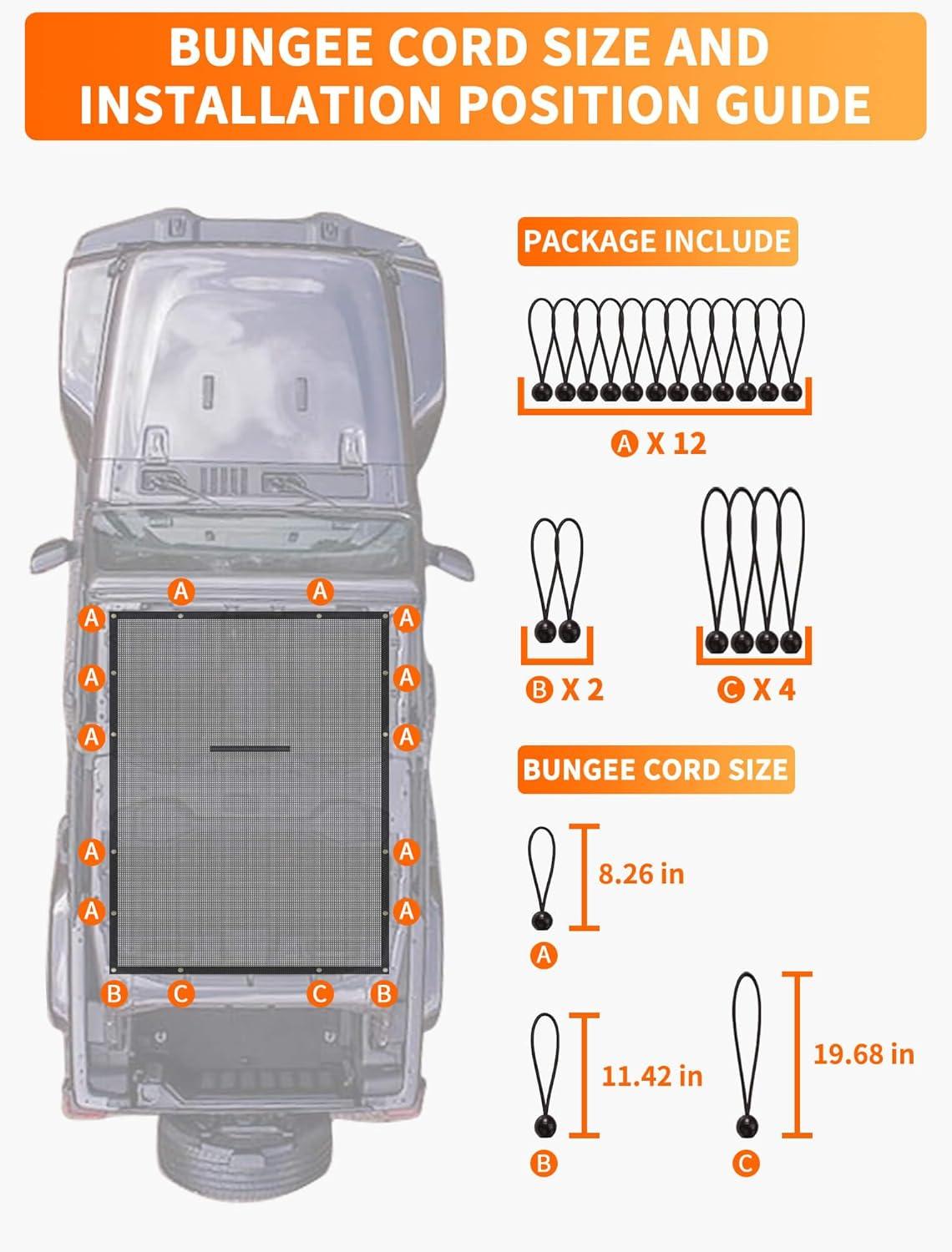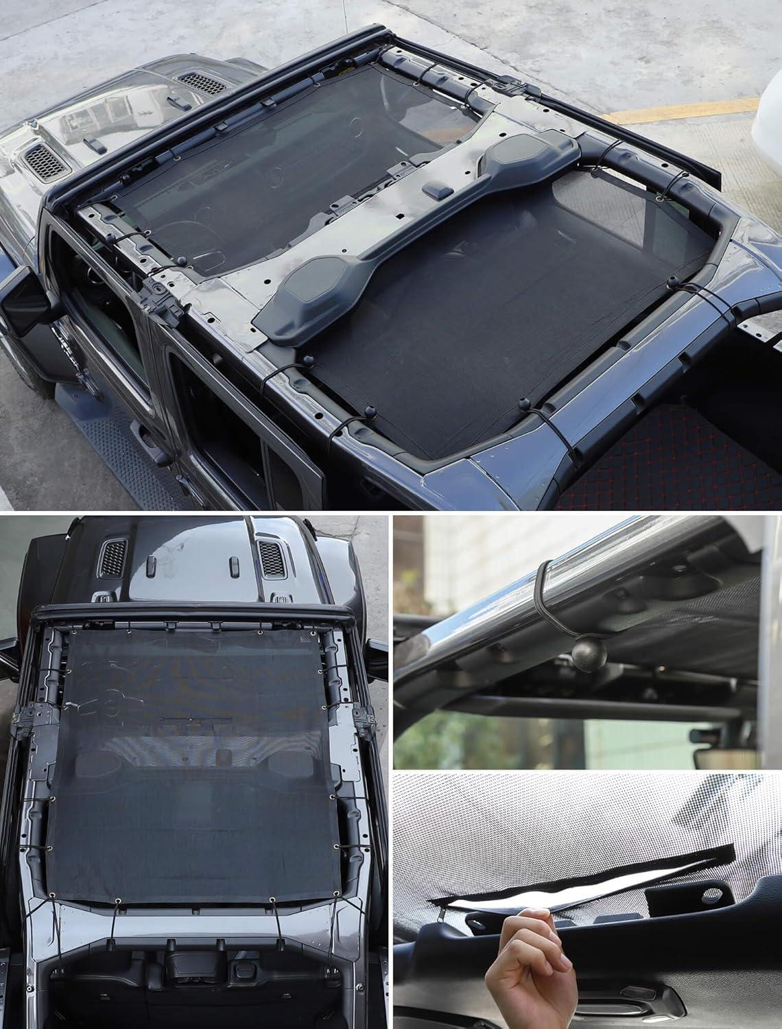 Constructed from high-strength polyester, this mesh sunshade is highly durable and tear-resistant. Its easy, no-drill installation takes just a few minutes, requiring no special tools. Whether for daily commutes or off-road adventures, our Wrangler sun shade mesh top is the perfect companion for a more comfortable and enjoyable ride.