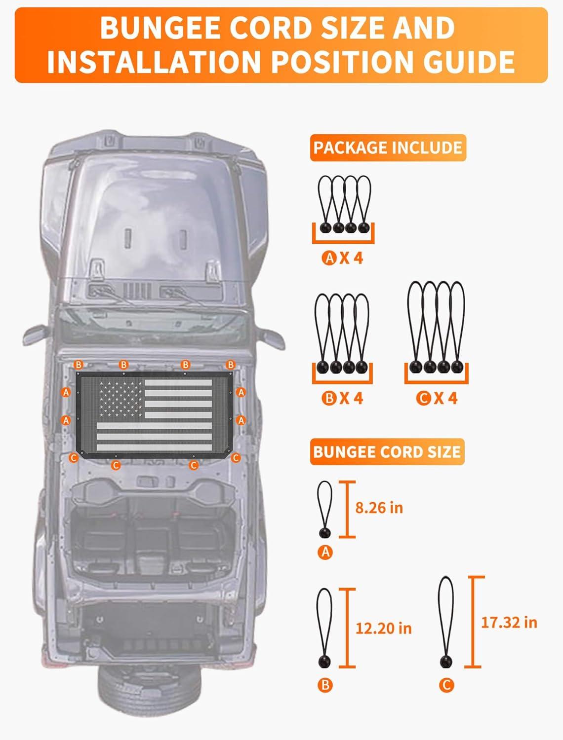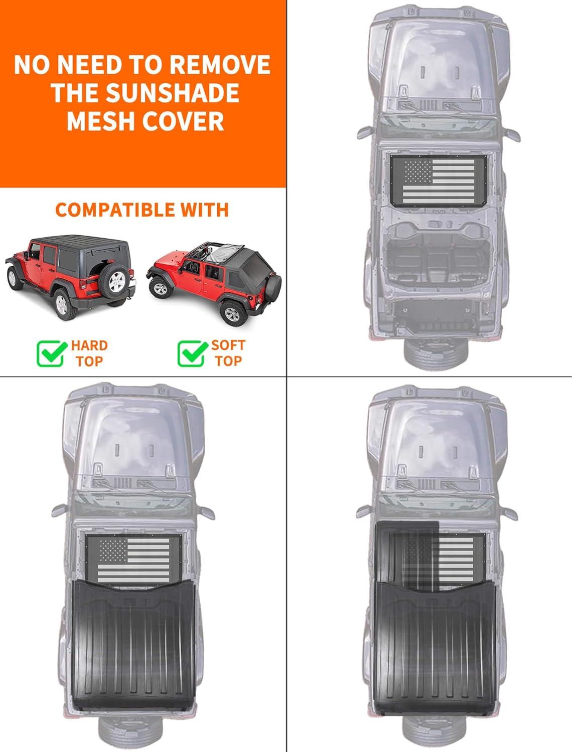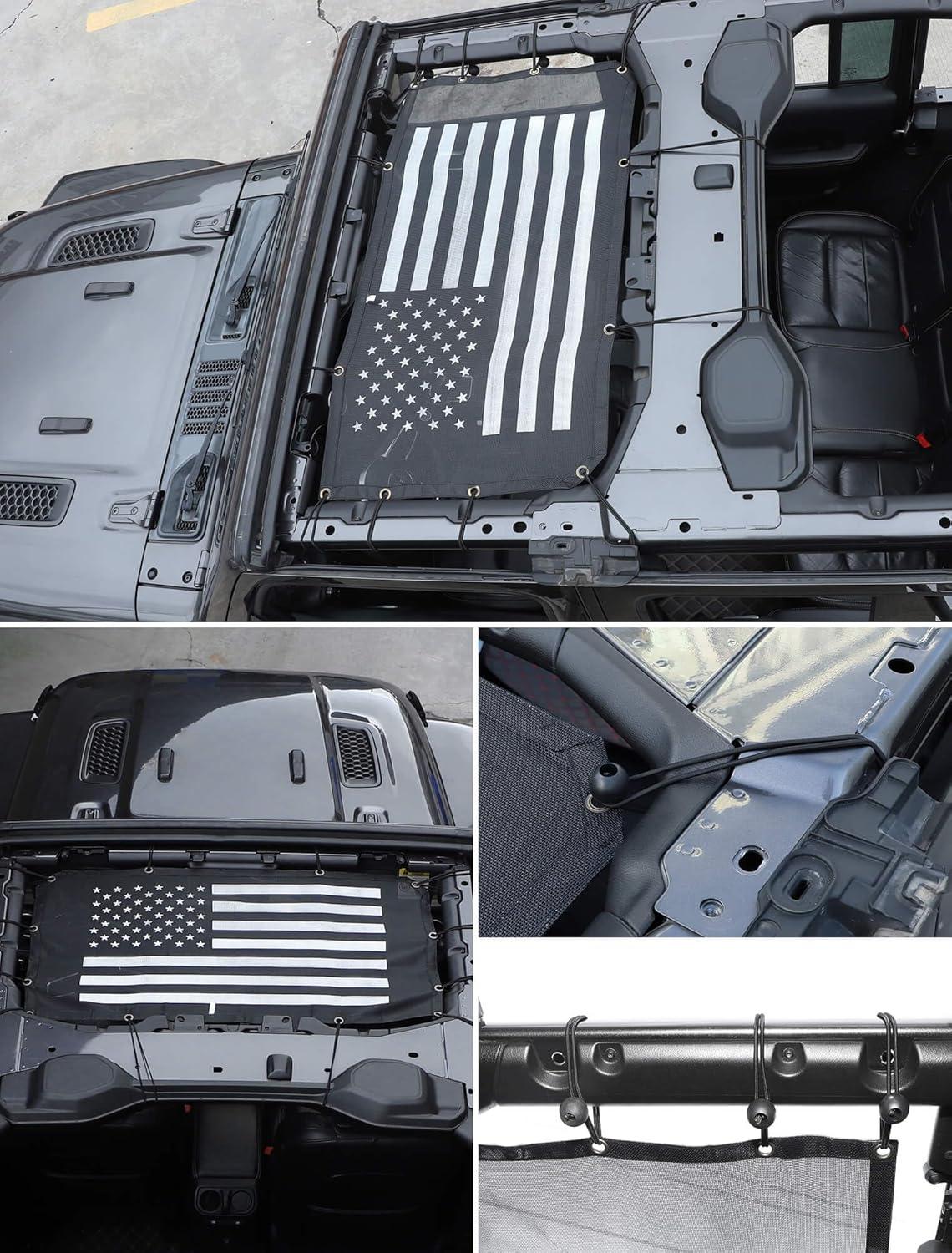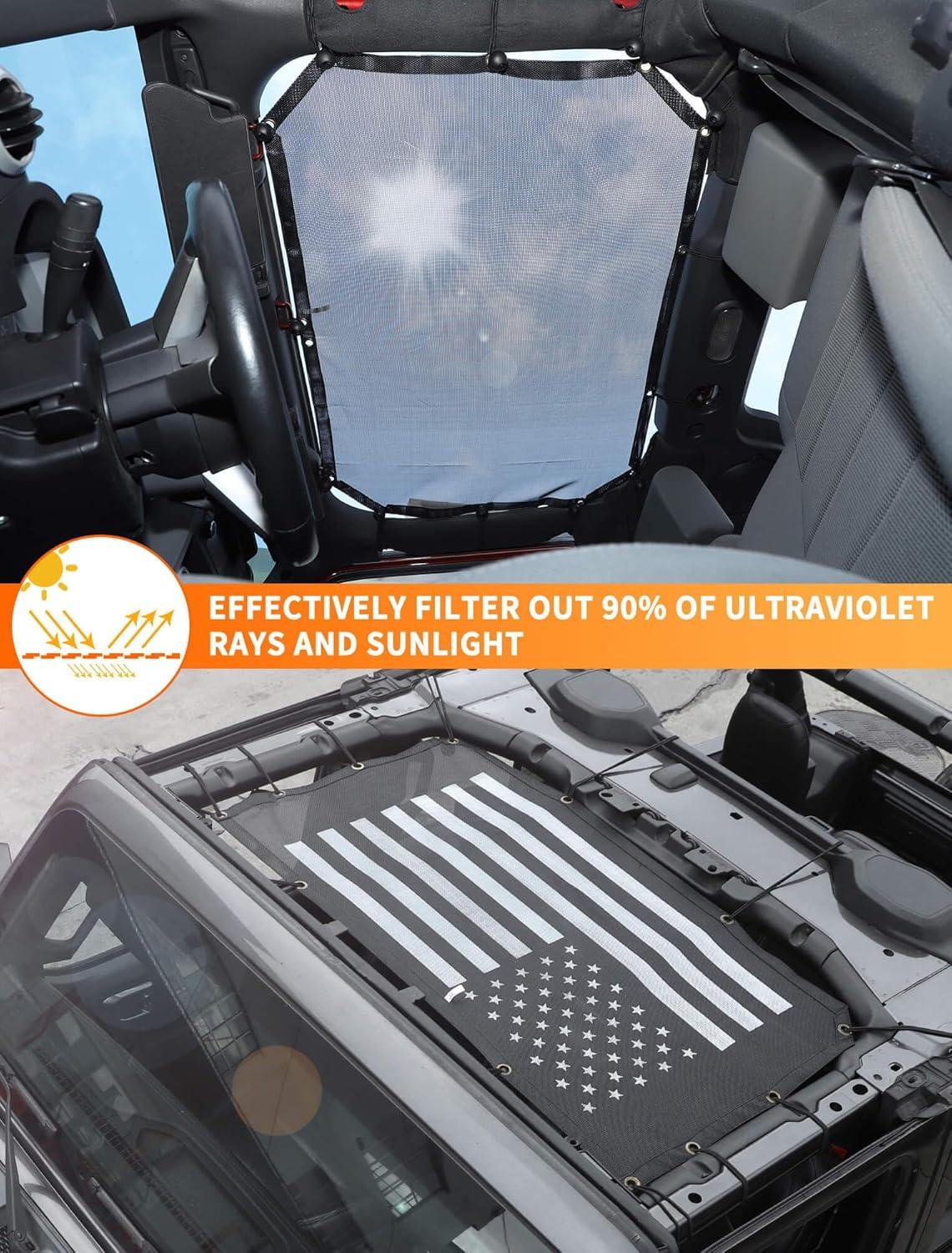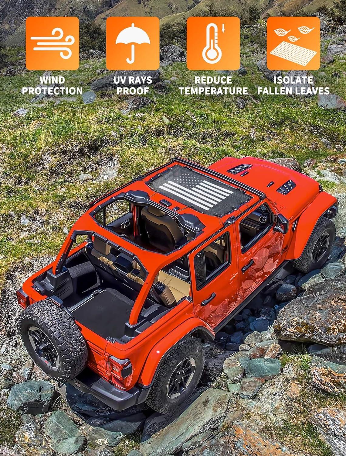 Savadicar Mesh Shade Top, Roof Sunshade Cover for 2018-2023 Jeep Wrangler JL JLU 4XE & Gladiator JT, UV Protection & Heat Reduction for Enhanced Comfort on The Road, American Flag, Black(American Flag)