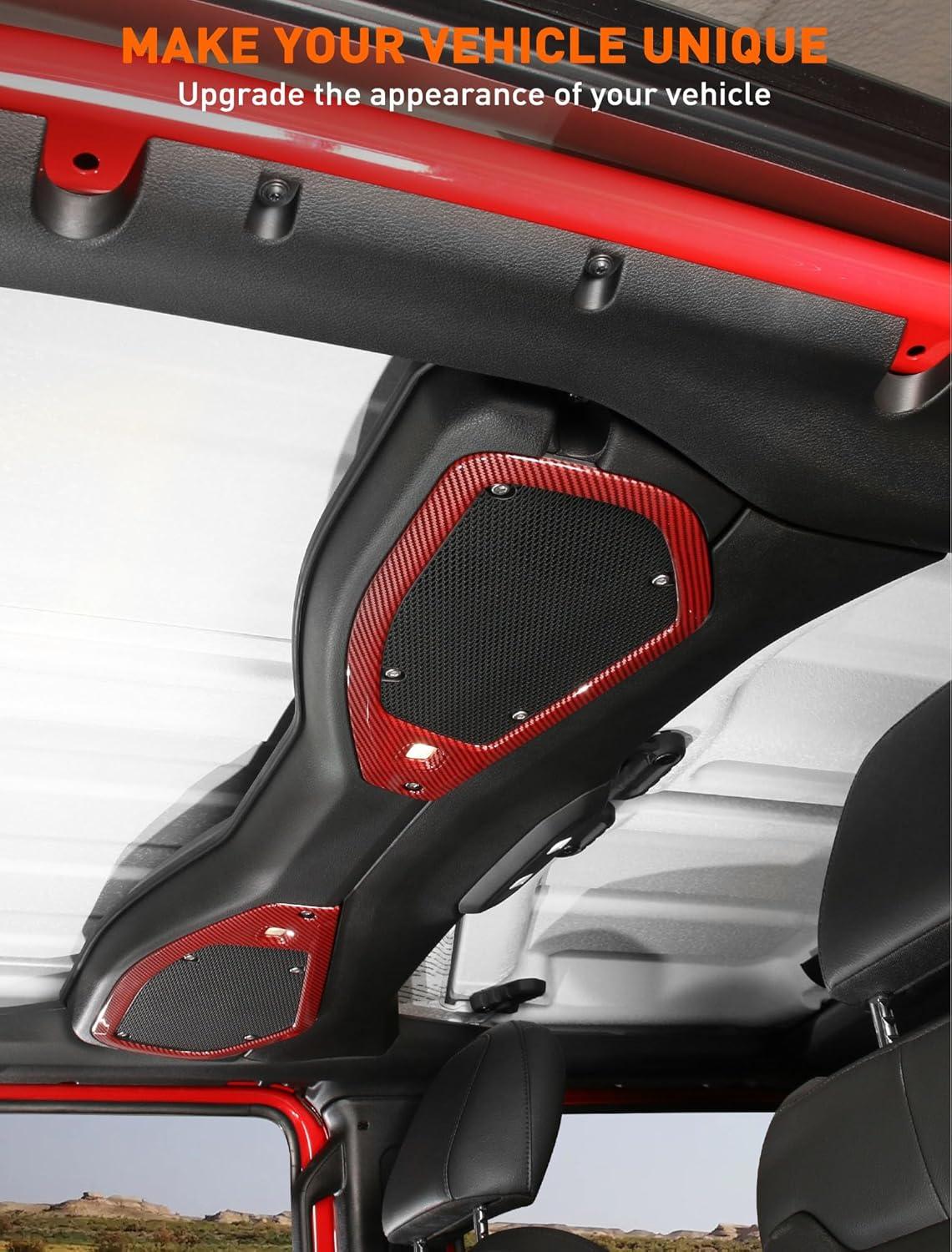 Savadicar Overhead Soundbar Speaker Trim Cover for 2024+ Jeep Wrangler (JL) & Gladiator (JT), Enhance Interior Aesthetics with Premium Styling Accent Accessories, Red, 2 Pcs(Carbon Fiber Red)