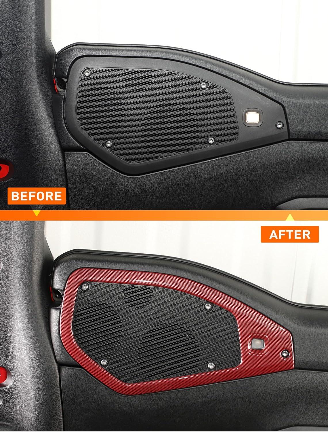 Savadicar Overhead Soundbar Speaker Trim Cover for 2024+ Jeep Wrangler (JL) & Gladiator (JT), Enhance Interior Aesthetics with Premium Styling Accent Accessories, Red, 2 Pcs(Carbon Fiber)