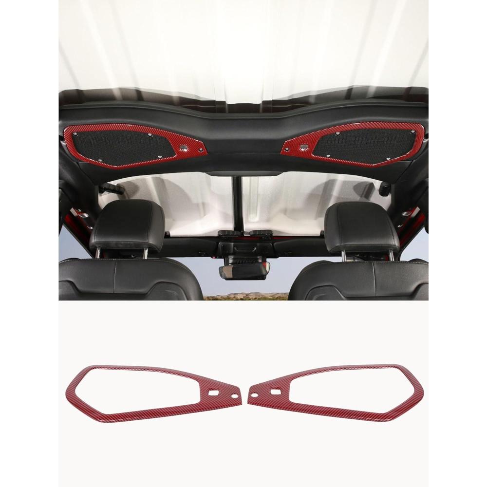 imageSavadicar Overhead Soundbar Speaker Trim Cover for 2024 Jeep Wrangler JL ampamp Gladiator JT Enhance Interior Aesthetics with Premium Styling Accent Accessories Red 2 PcsCarbon Fiber