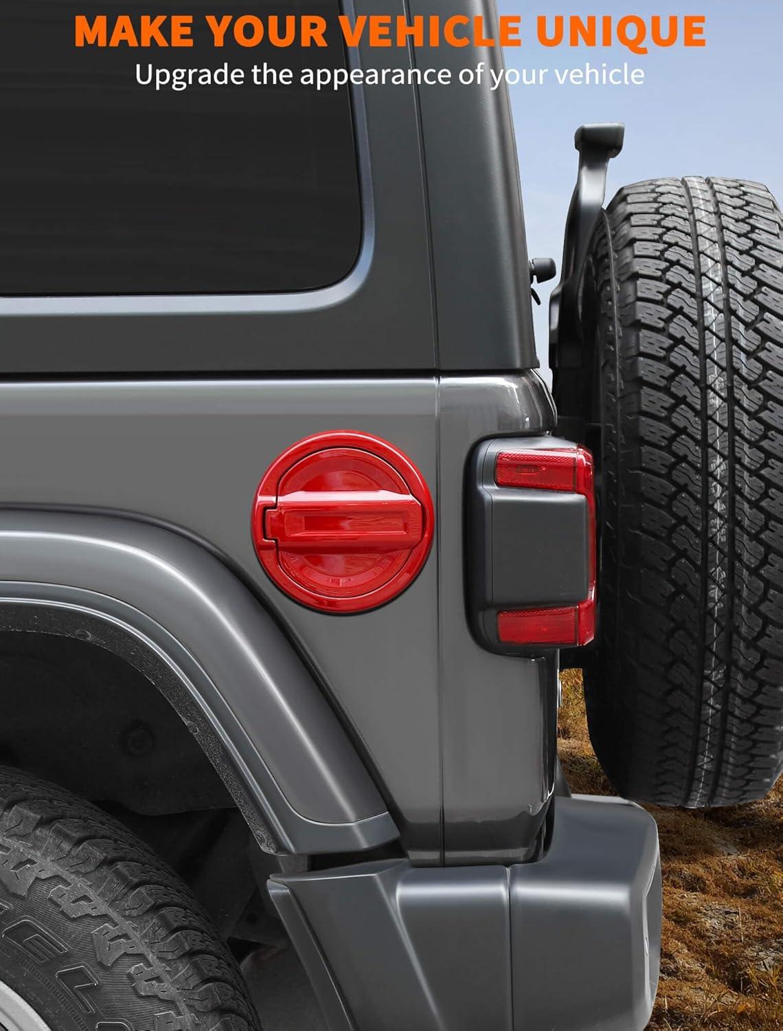 Savadicar Pink Fuel Door Trim for Jeep Wrangler JL JLU 4xe & Gladiator JT 2018-Present – Exterior Gas Cap Accent Styling Cover Accessory(Red)