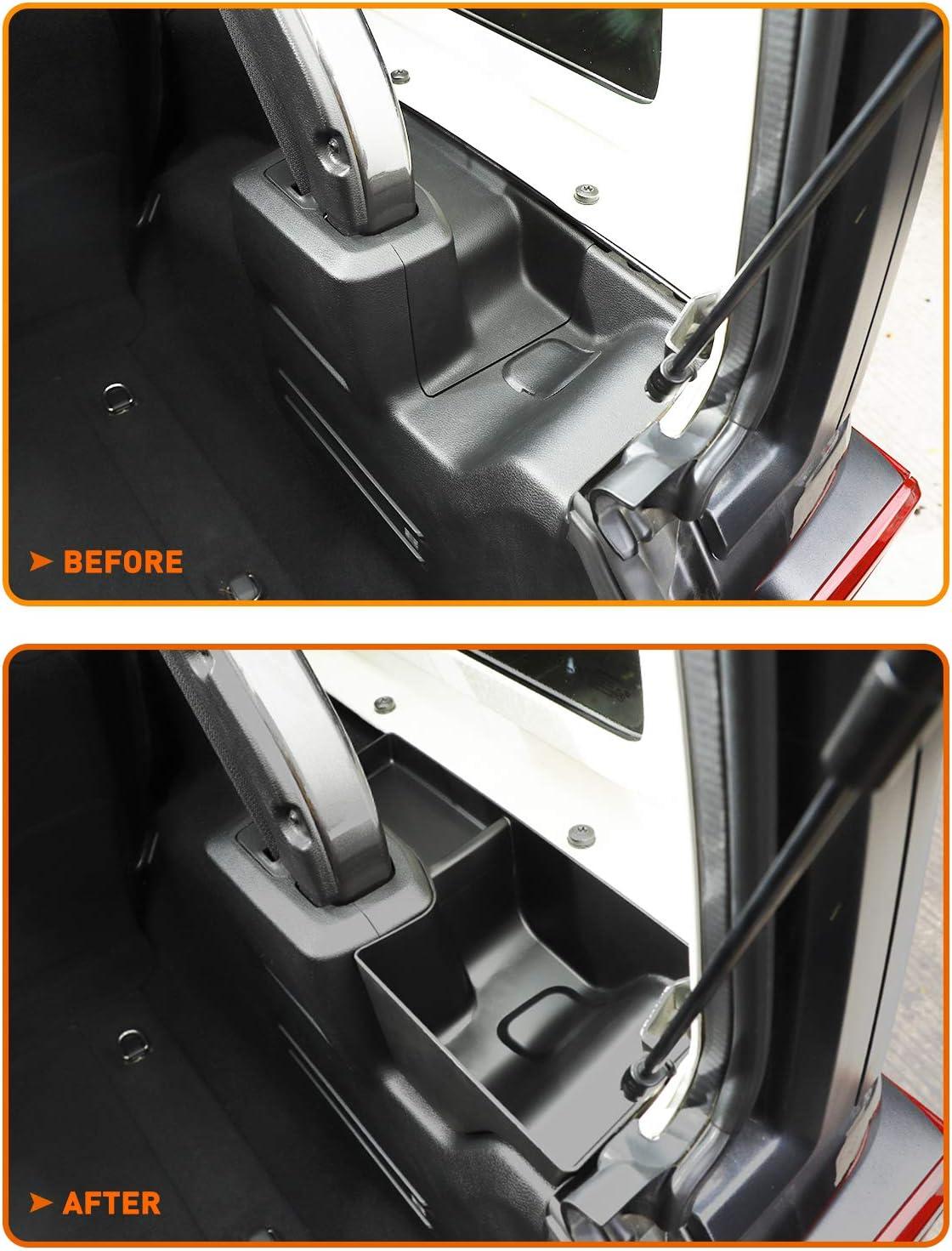 EXTRA STORAGE — Create extra storage space for your stuffs on left sides of the rear trunk by use this jeep jl accessories, convenient for place rope, toilet paper, flashlights, tools, drinks and others etc.