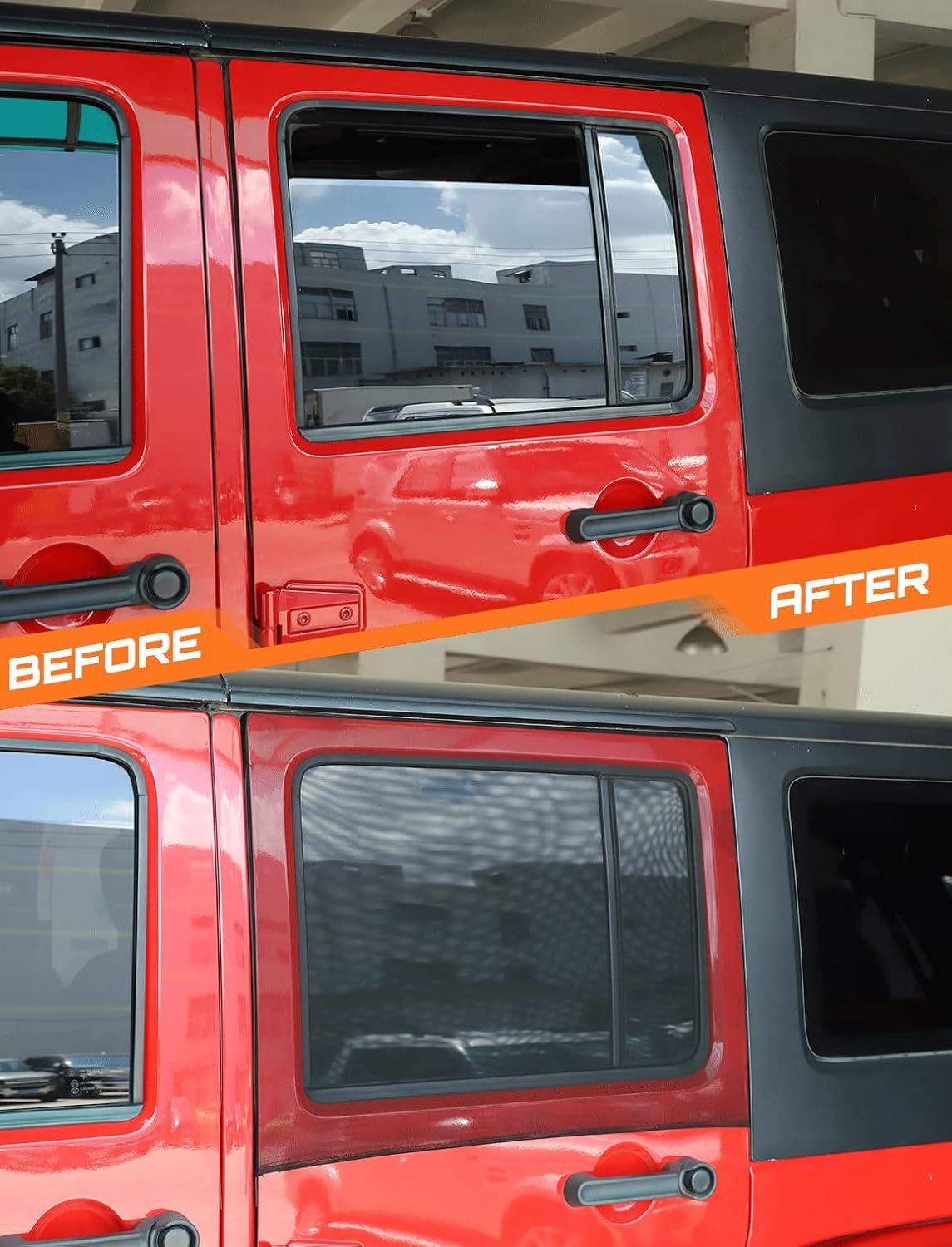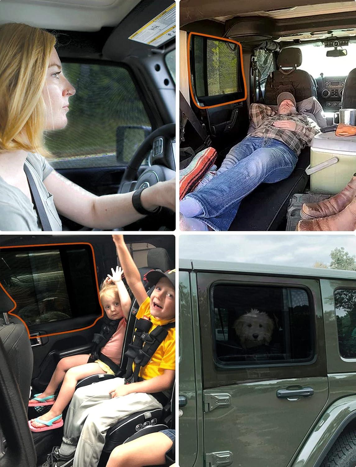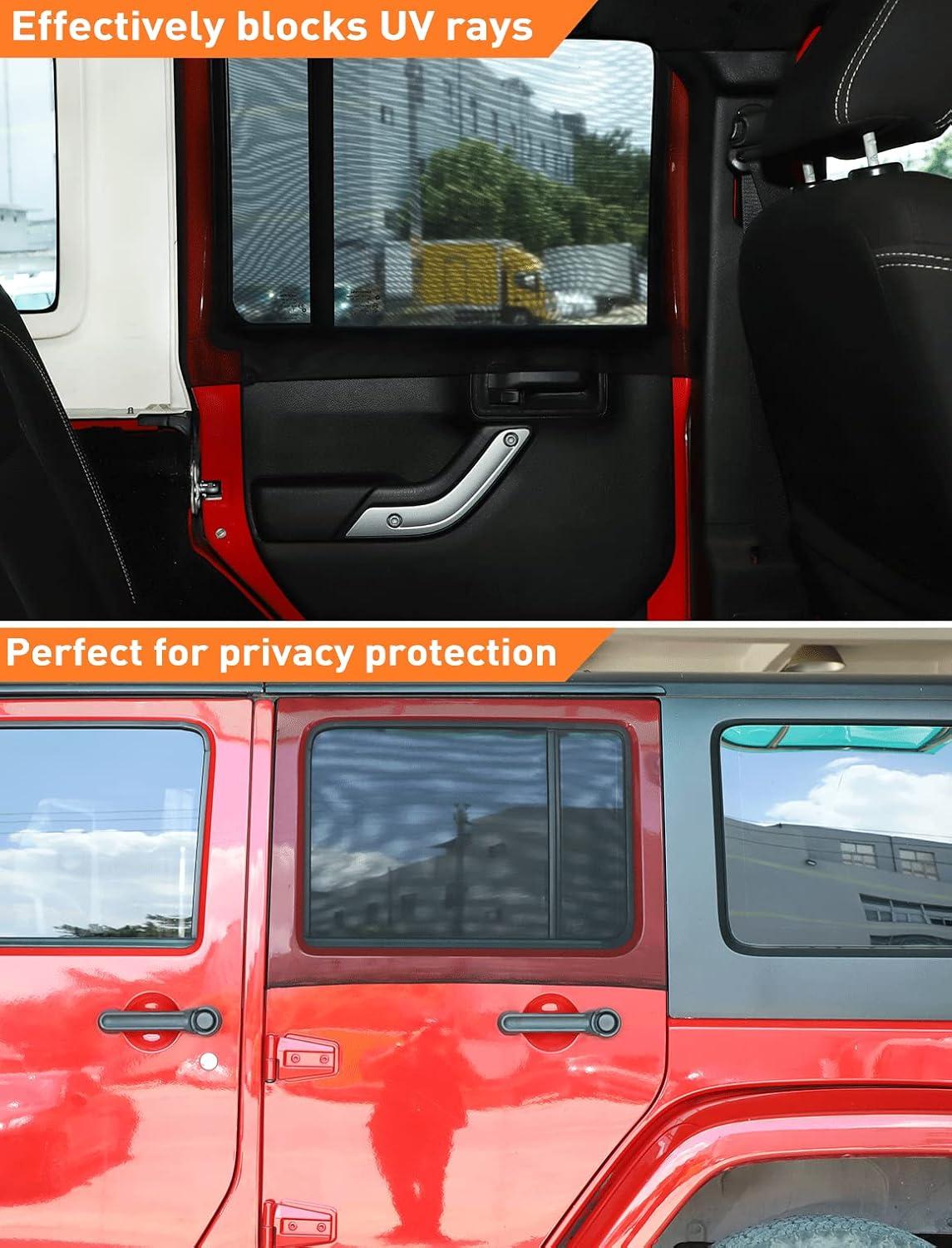 BROAD COMPATIBILITY — Savadicar Window Sun Shades is specifically designed for 1997 to present jeep wrangler tj jk jku jl jlu and gladiator jt all models, And it is woven from high-stretch nylon mesh and stretches in all directions to fit the jeep's windows.