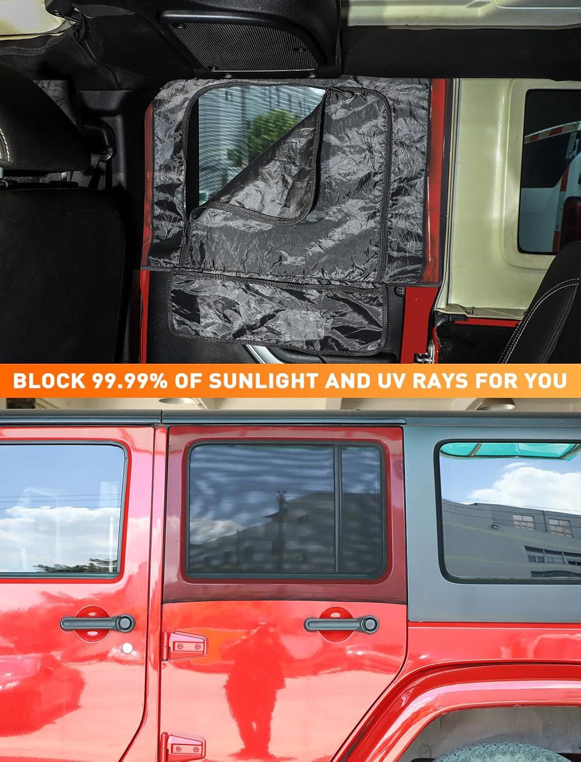 KEEP SUNSHINE OUT — Savadicar Sun Protection Curtains for Jeep Wrangler are designed to help Jeep owners block 99% of sunlight, preventing direct sun exposure that could harm the interior equipment of your vehicle. They also effectively shield you and you baby from UV rays, ensuring a cool and comfortable interior for your Jeep.