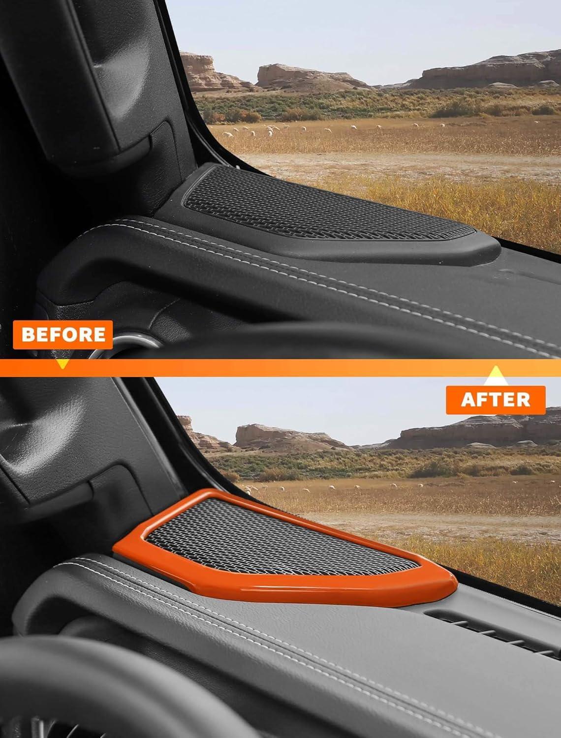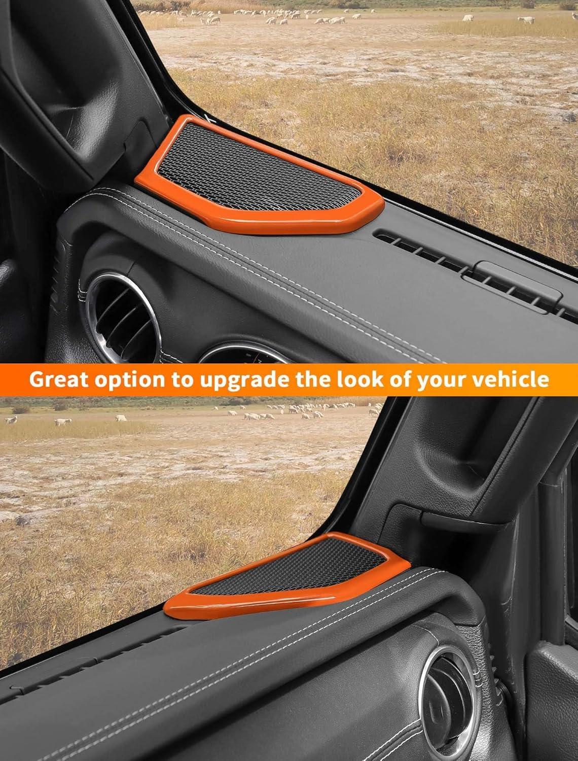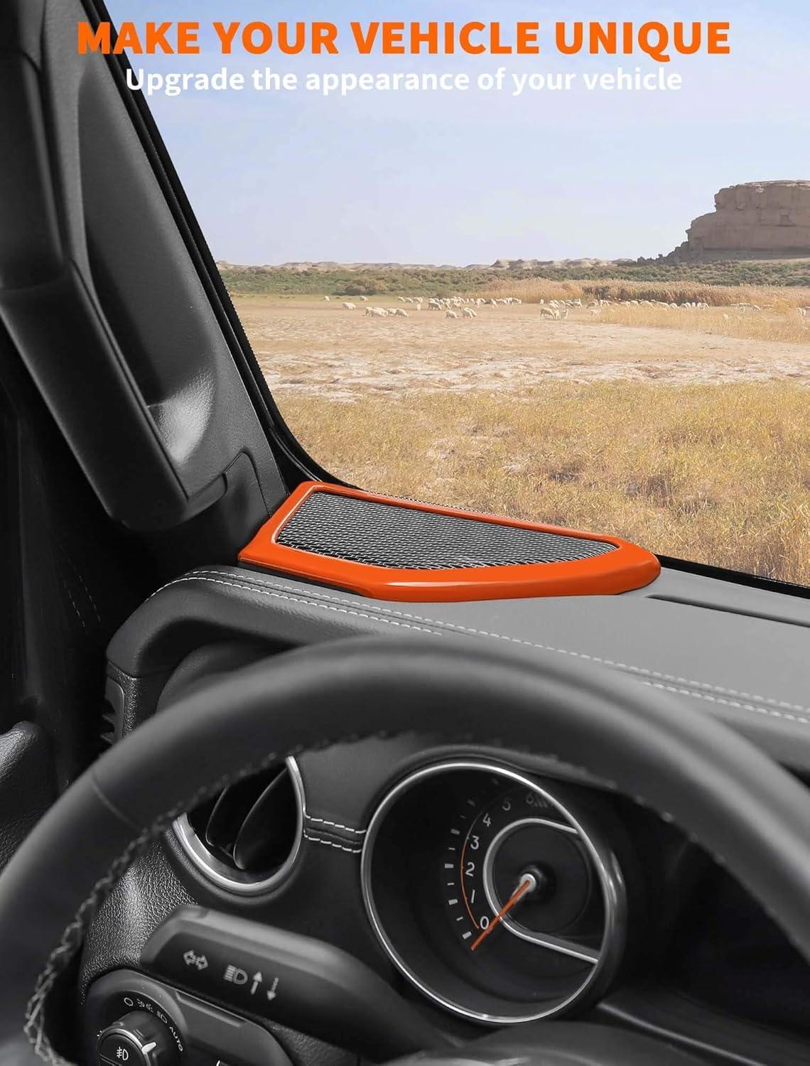 Savadicar Red Carbon Fiber Interior Accessories – Dashboard Speaker Trim Cover for 2018-Present Jeep Wrangler JL JLU 4XE & Gladiator JT – Premium Texture Interior Decor Upgrade Option, 2-Piece(Orange)