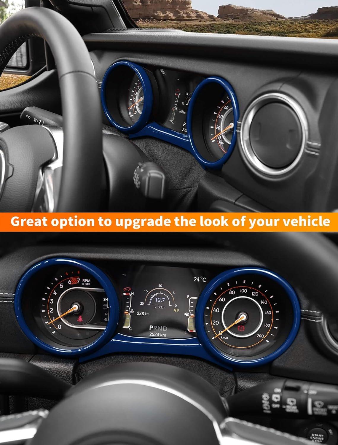 Savadicar Red Carbon Fiber Interior Accessories – Instrument Panel Trim Set for 2018-2023 Jeep Wrangler JL JLU 4XE & Gladiator JT – Premium Texture Interior Decor Upgrade Option, 3-Piece(Blue)