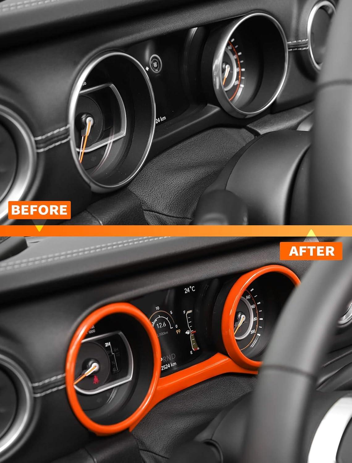 𝗨𝗣𝗚𝗥𝗔𝗗𝗘𝗗 𝗜𝗡𝗧𝗘𝗥𝗜𝗢𝗥 𝗔𝗣𝗣𝗘𝗔𝗥𝗔𝗡𝗖𝗘 – Upgrade the interior style of your Jeep with a set of instrument cluster trim. These glossy red carbon fiber decorations are a simple and affordable way to achieve a significant visual enhancement inside your Wrangler or Gladiator