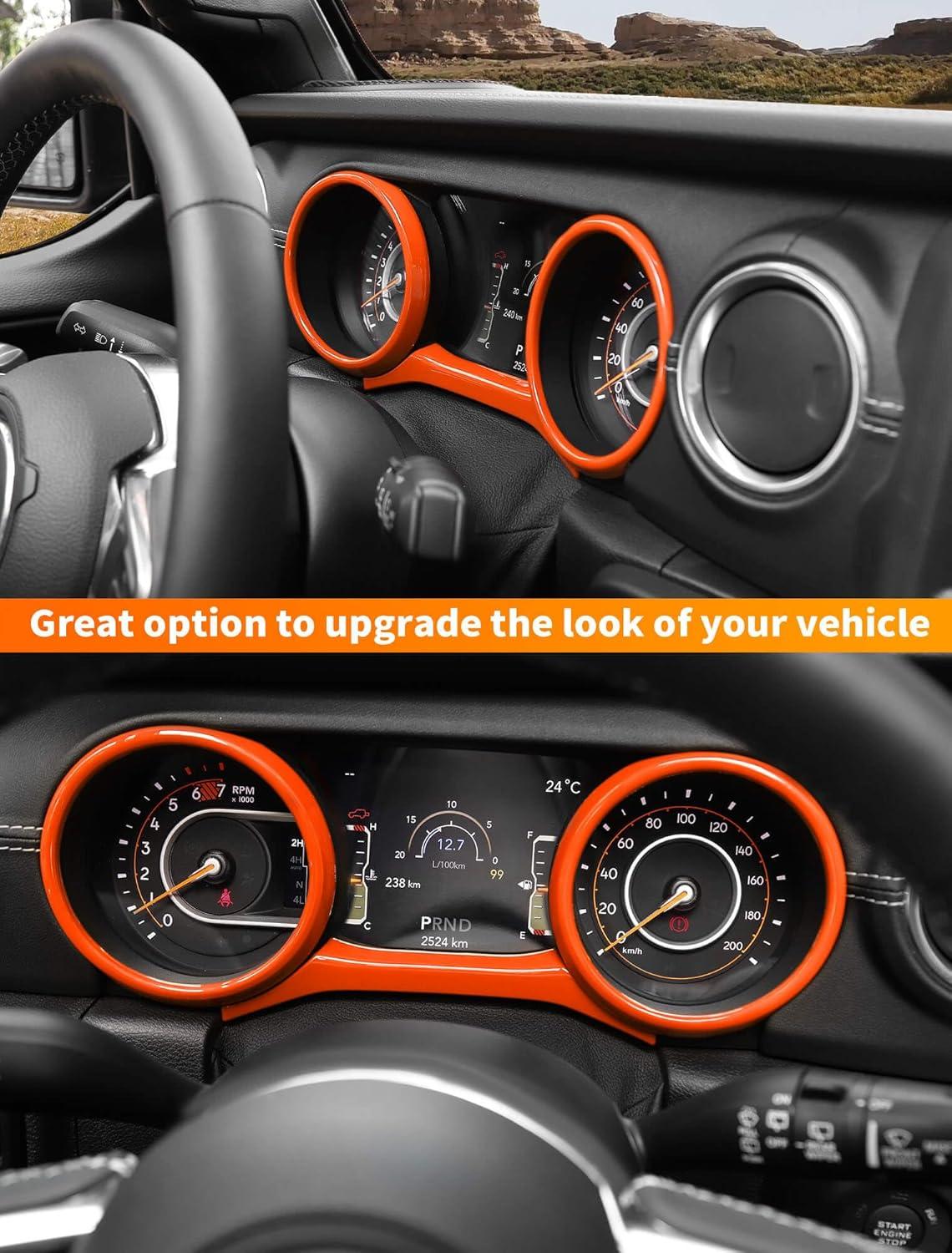 Savadicar Red Carbon Fiber Interior Accessories – Instrument Panel Trim Set for 2018-2023 Jeep Wrangler JL JLU 4XE & Gladiator JT – Premium Texture Interior Decor Upgrade Option, 3-Piece(Orange)