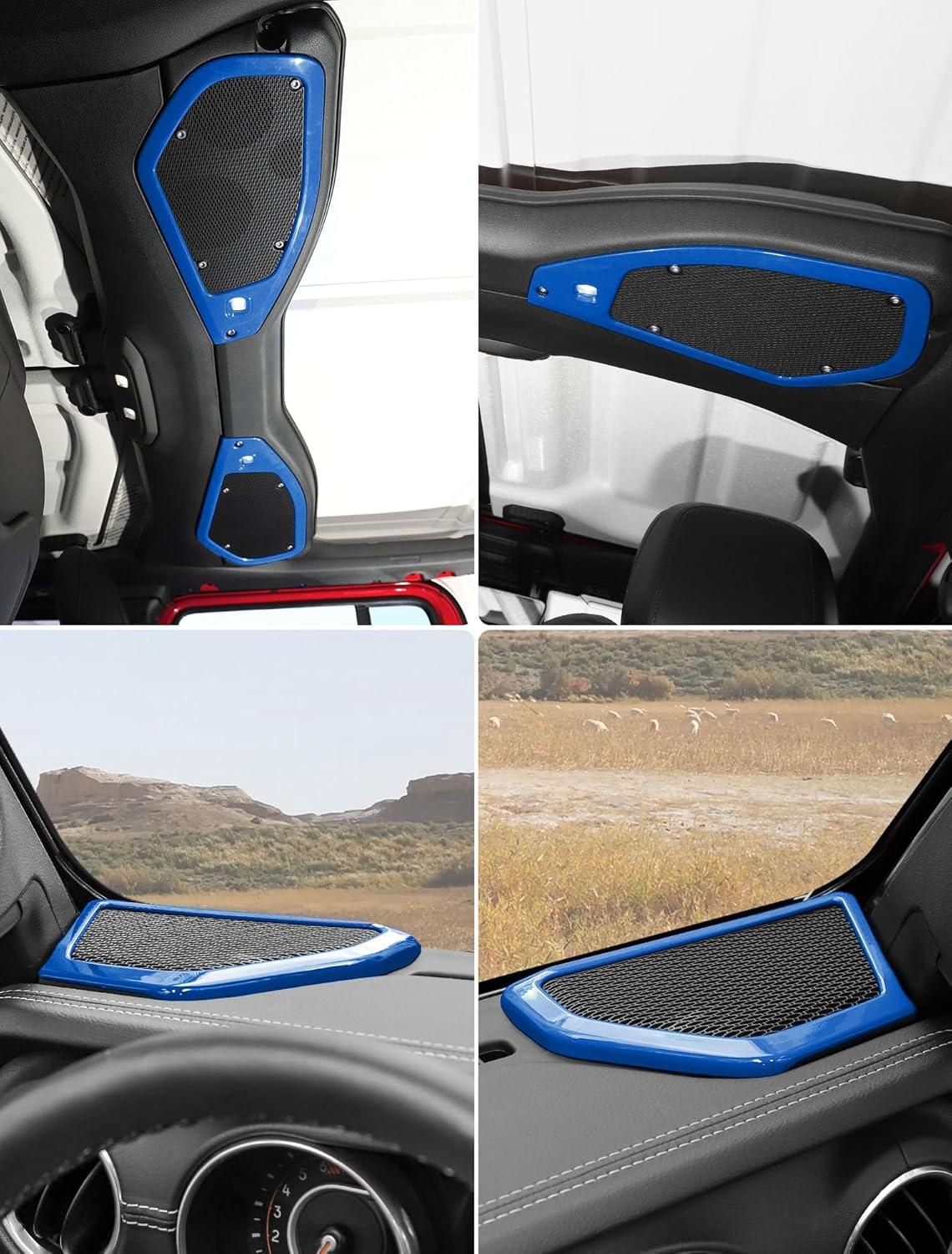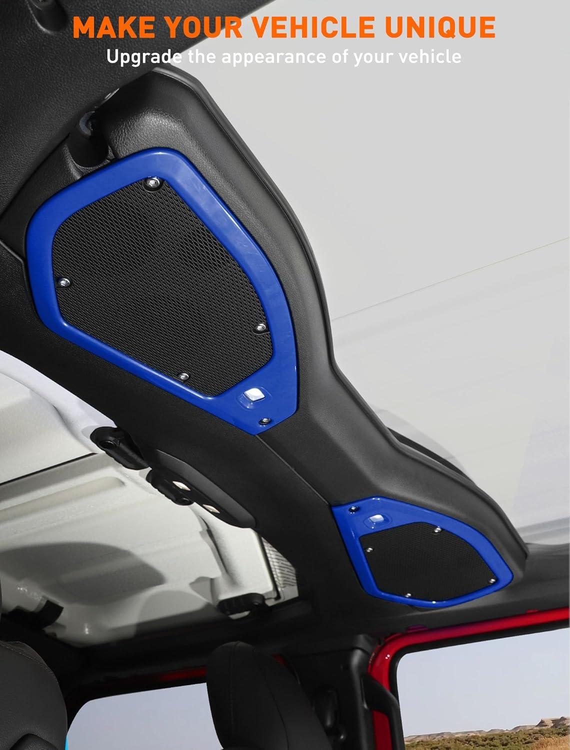 Savadicar Red Interior Trim Kit for 2024+ Jeep Wrangler (JL) & Gladiator (JT) – 4 Pcs Decor Cover Set for Front Dash Speakers and Soundbar, Stylish Accessories for an Upgrade(Blue)