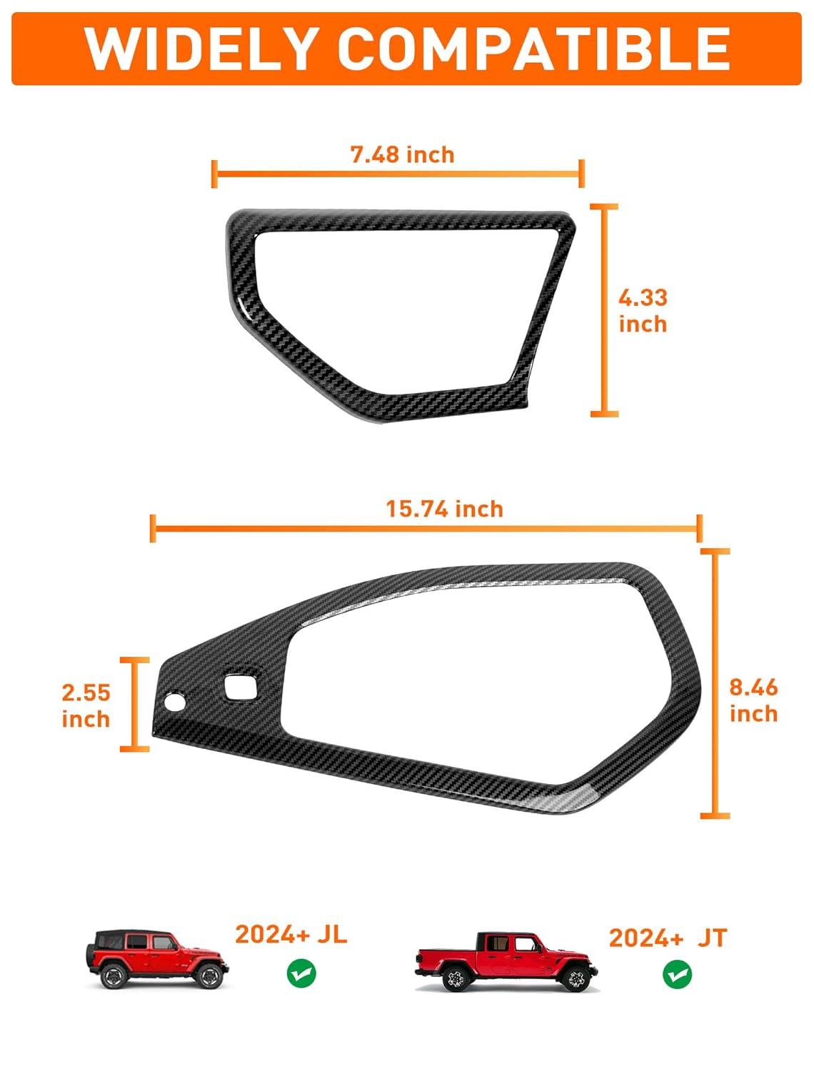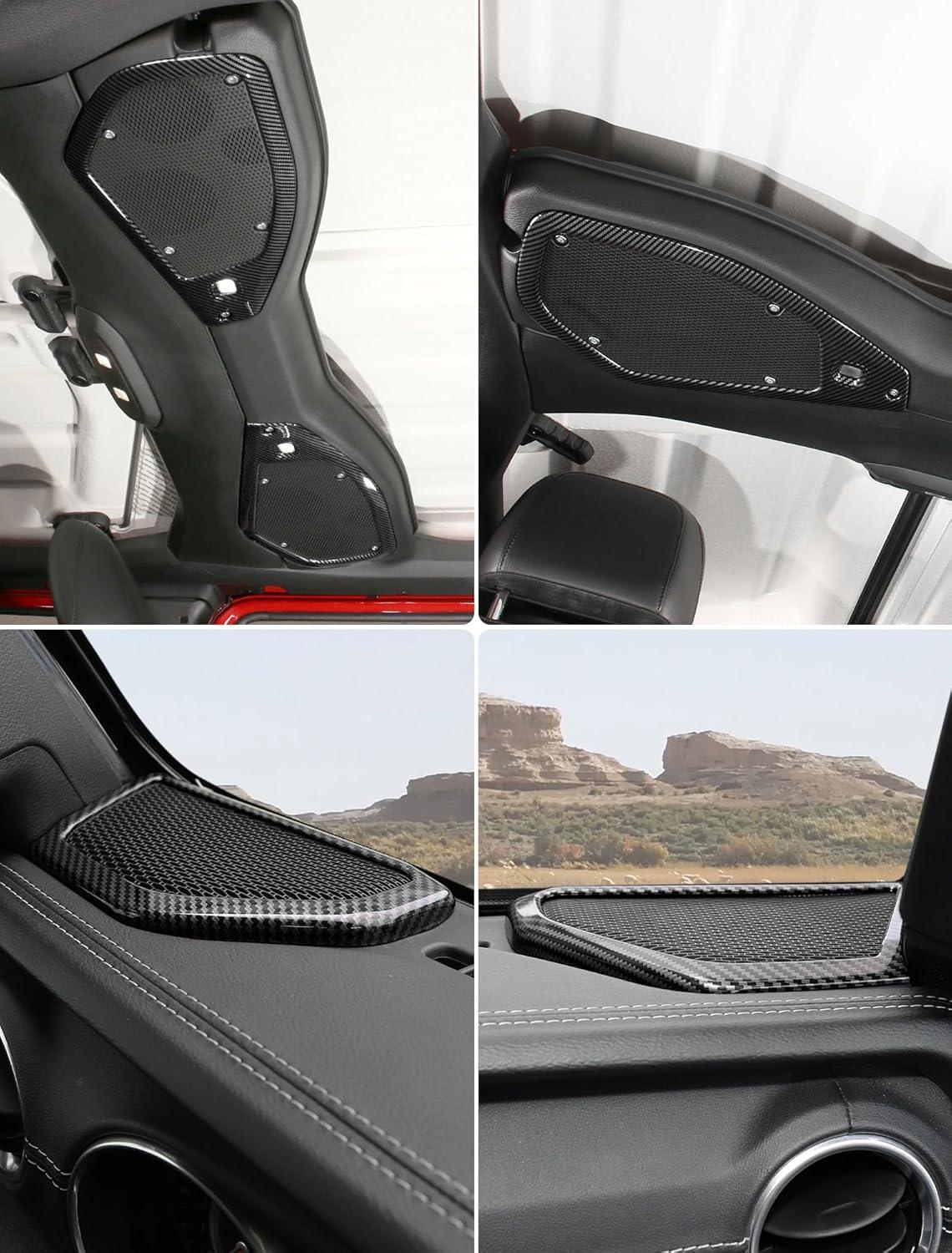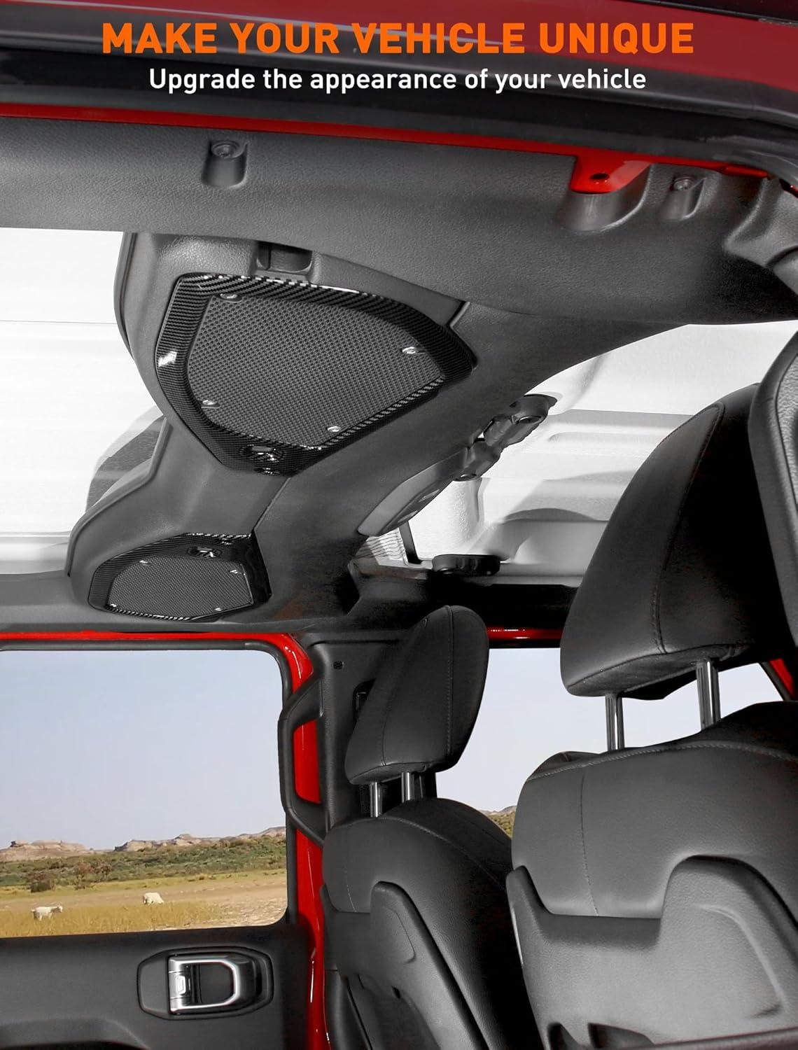 Savadicar Red Interior Trim Kit for 2024+ Jeep Wrangler (JL) & Gladiator (JT) – 4 Pcs Decor Cover Set for Front Dash Speakers and Soundbar, Stylish Accessories for an Upgrade(Carbon Fiber)