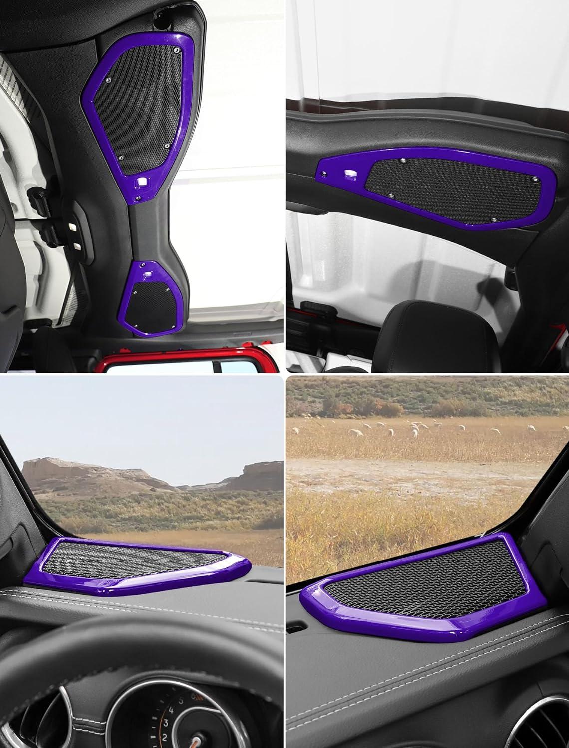 Savadicar Red Interior Trim Kit for 2024+ Jeep Wrangler (JL) & Gladiator (JT) - 4 Pcs Decor Cover Set for Front Dash Speakers and Soundbar, Stylish Accessories for an Upgrade(Purple)