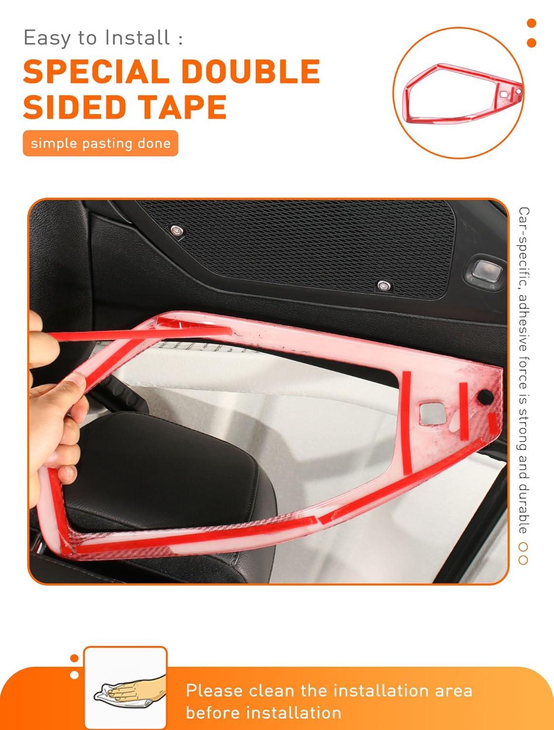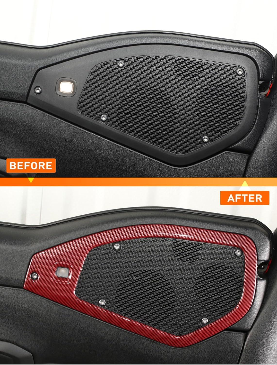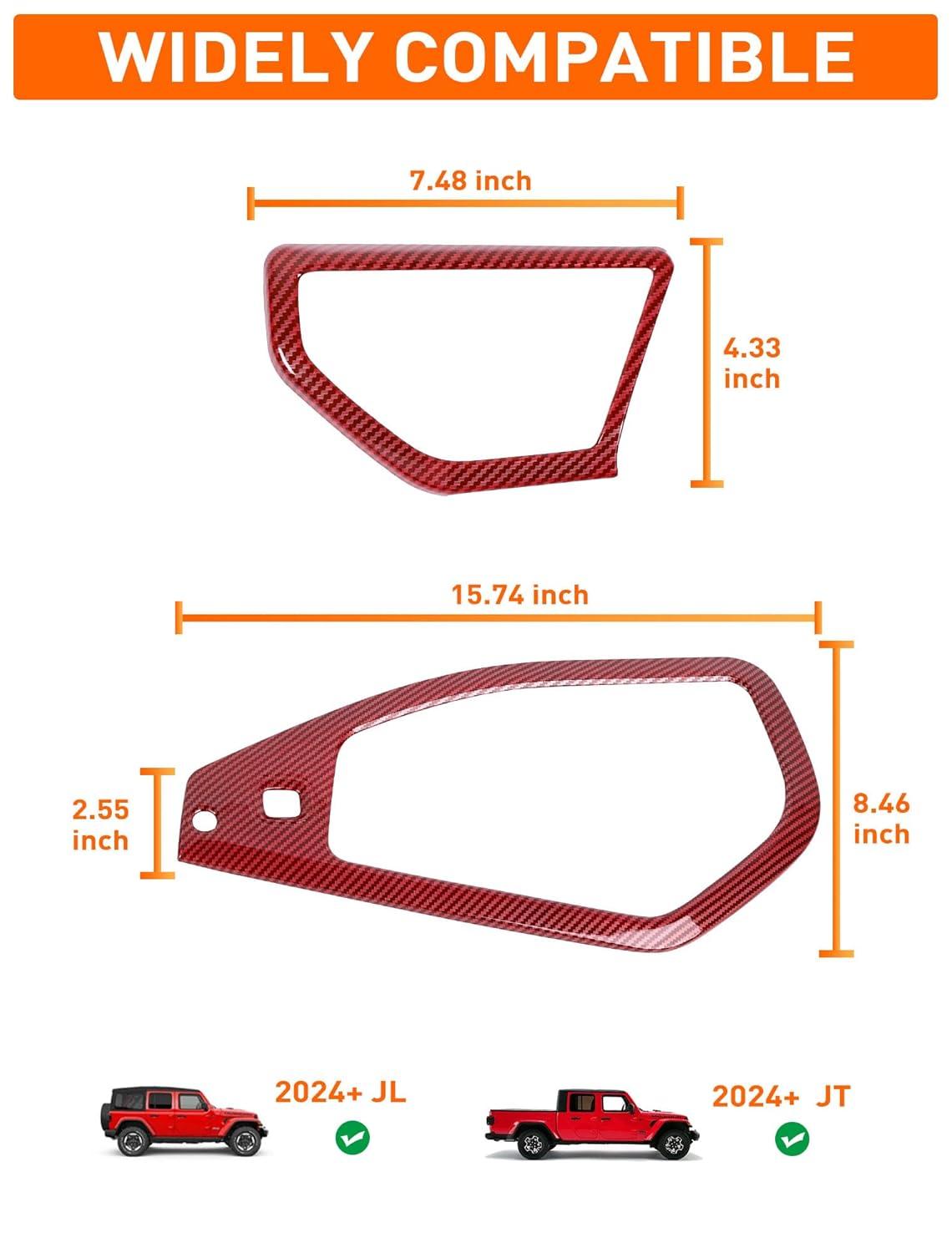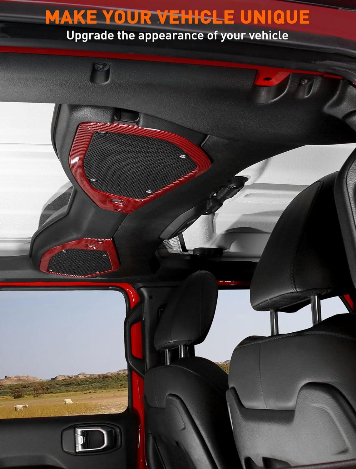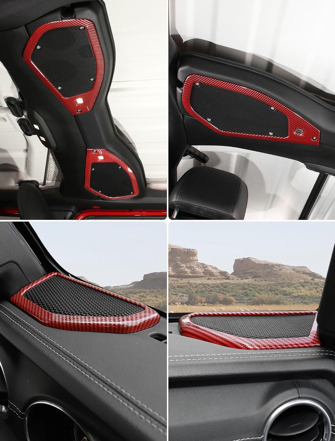 Savadicar Red Interior Trim Kit for 2024+ Jeep Wrangler (JL) & Gladiator (JT) - 4 Pcs Decor Cover Set for Front Dash Speakers and Soundbar, Stylish Accessories for an Upgrade(Red Carbon Fiber)