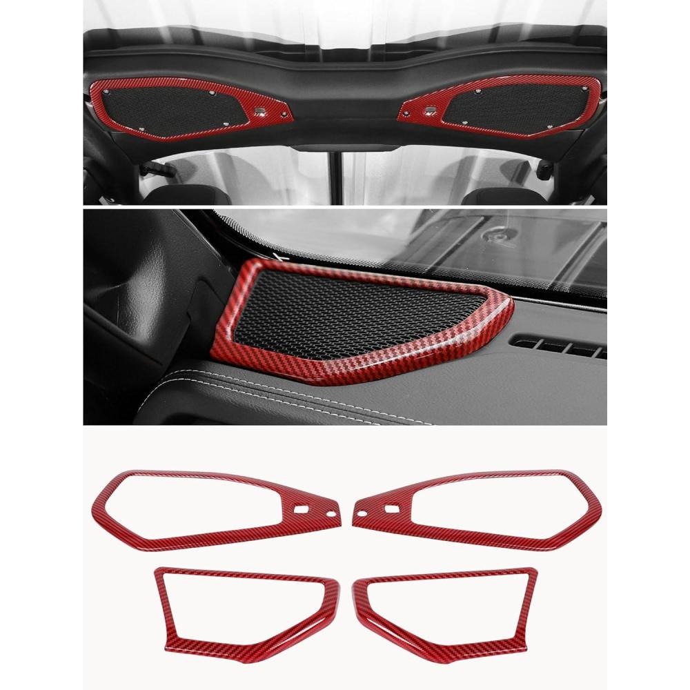 imageSavadicar Red Interior Trim Kit for 2024 Jeep Wrangler JL amp Gladiator JT  4 Pcs Decor Cover Set for Front Dash Speakers and Soundbar Stylish Accessories for an UpgradeRed Carbon Fiber