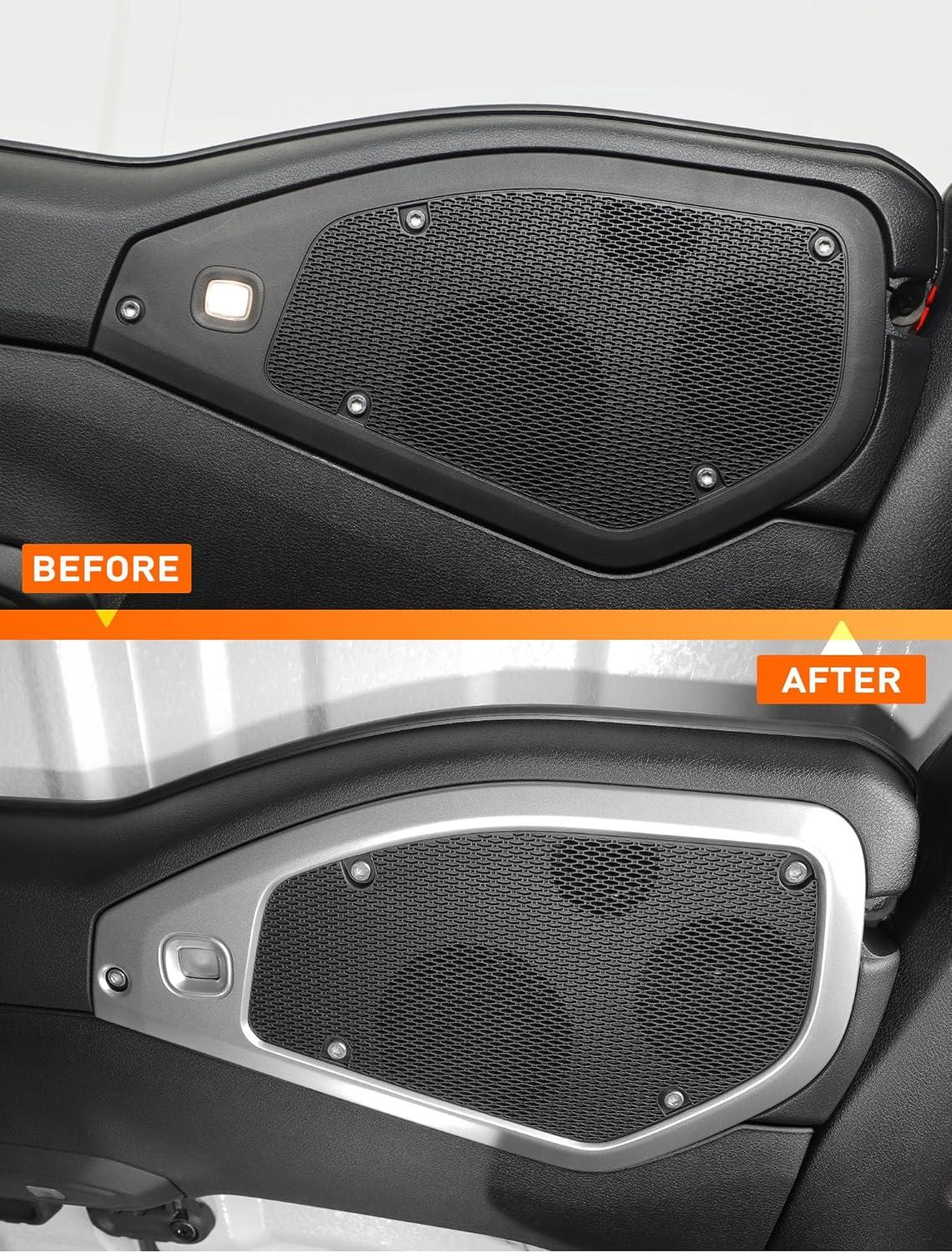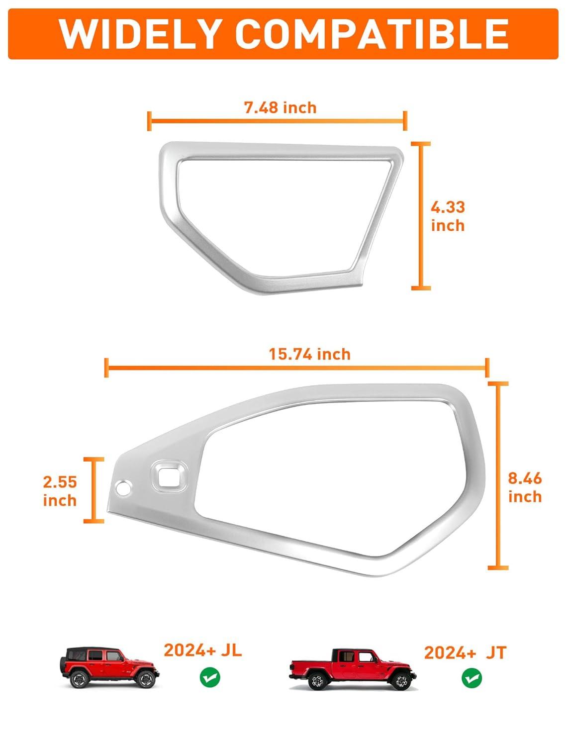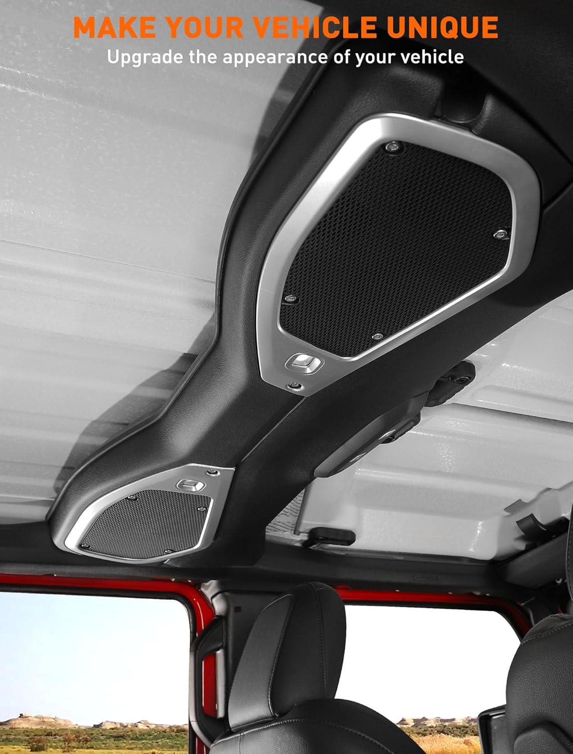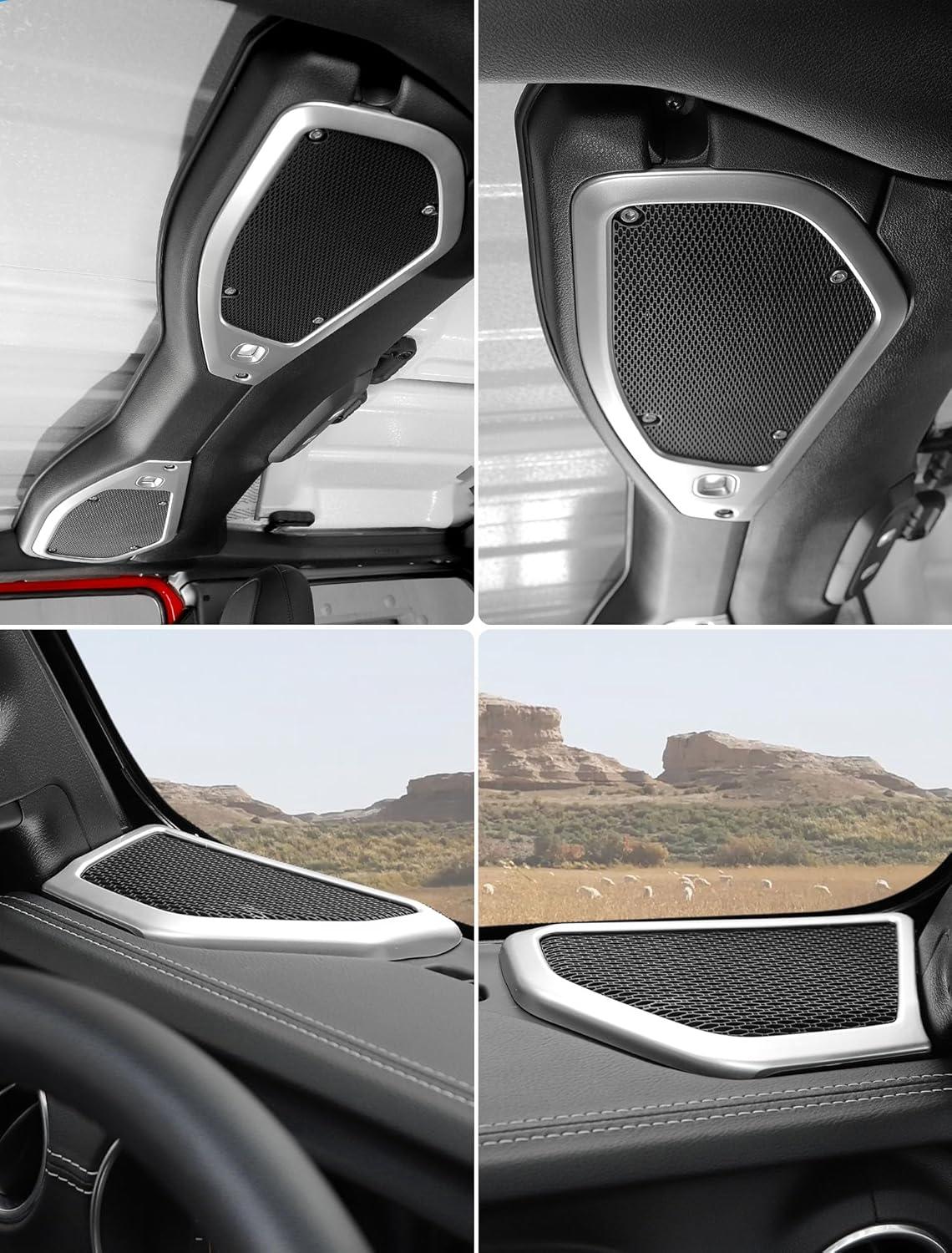Savadicar Red Interior Trim Kit for 2024+ Jeep Wrangler (JL) & Gladiator (JT) – 4 Pcs Decor Cover Set for Front Dash Speakers and Soundbar, Stylish Accessories for an Upgrade(Sliver)