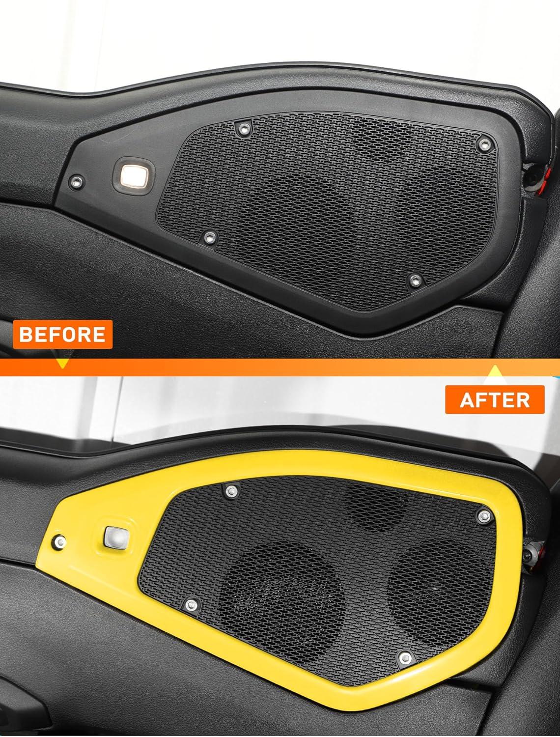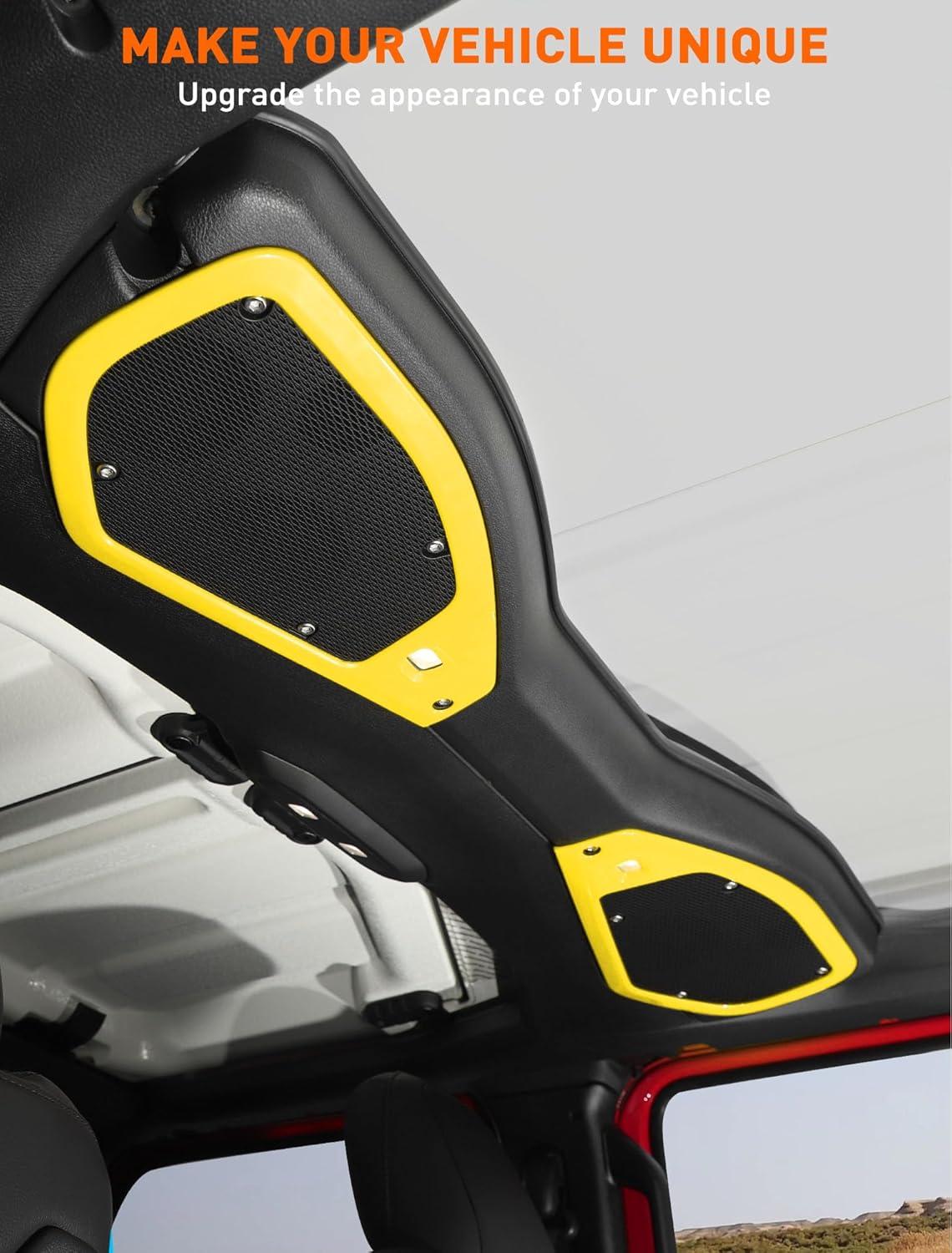 Savadicar Red Interior Trim Kit for 2024+ Jeep Wrangler (JL) & Gladiator (JT) - 4 Pcs Decor Cover Set for Front Dash Speakers and Soundbar, Stylish Accessories for an Upgrade(Yellow)