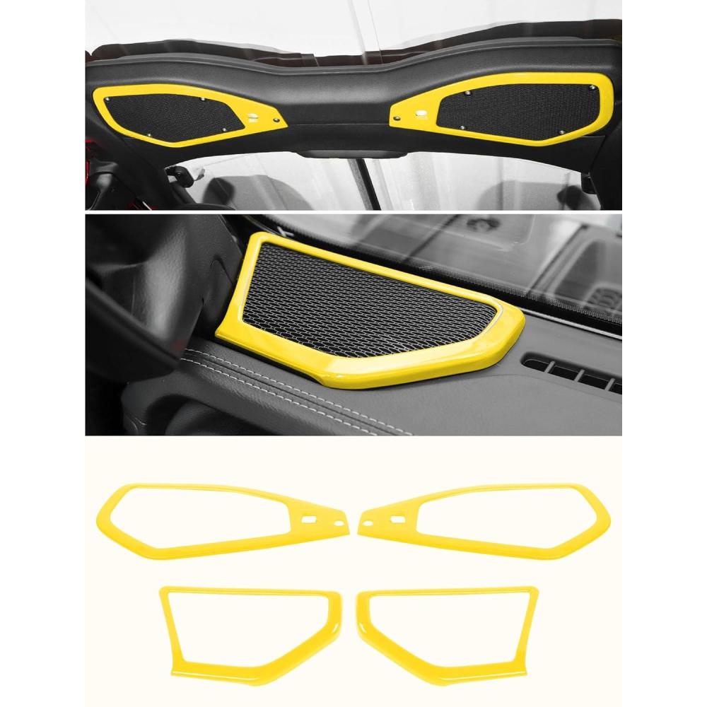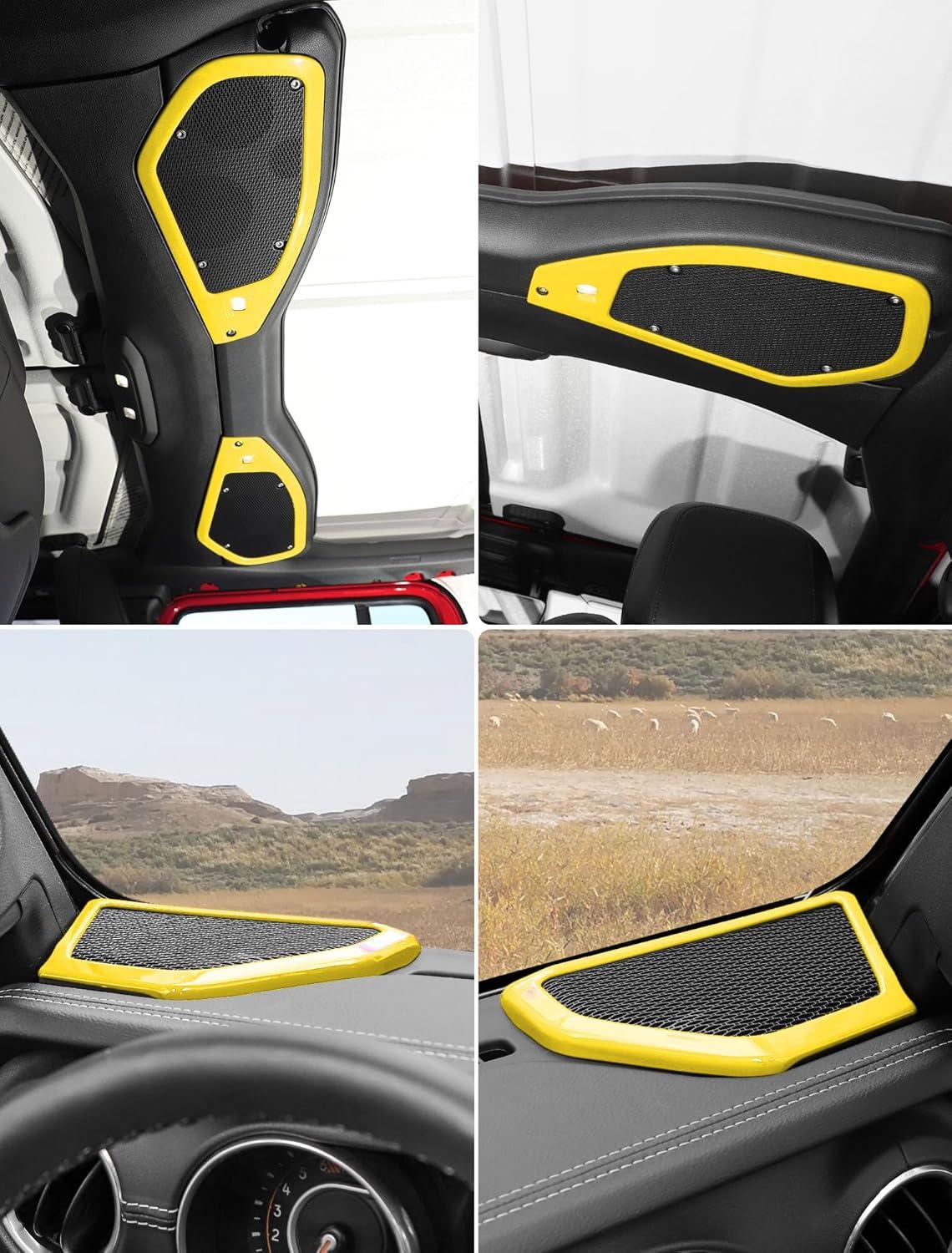 Savadicar Red Interior Trim Kit for 2024+ Jeep Wrangler (JL) & Gladiator (JT) – 4 Pcs Decor Cover Set for Front Dash Speakers and Soundbar, Stylish Accessories for an Upgrade(Yellow)