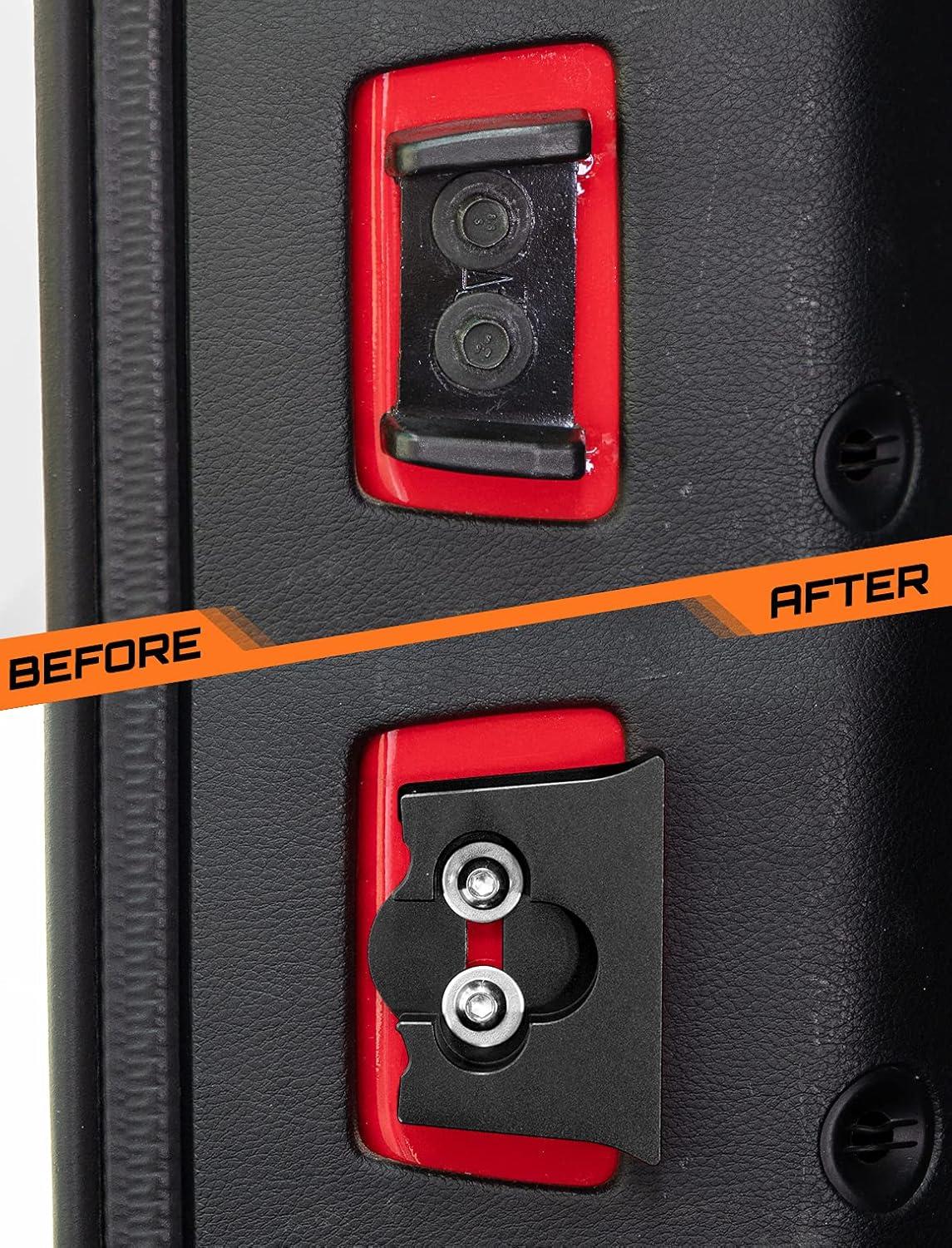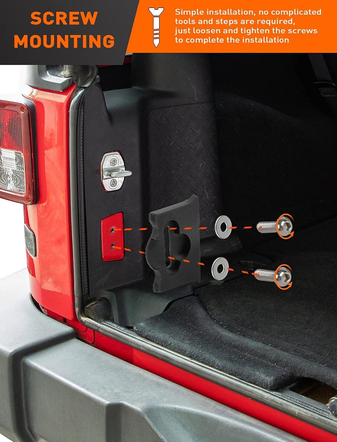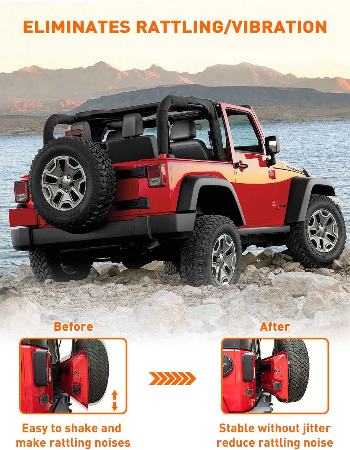 🔧 REPLACE & UPGRADE — Use this jeep wrangler accessories to replace the original tailgate buffer latch that is worn and deformed due to the excessively large spare tire, and you will get a powerful and sturdy tailgate, allowing you to open and close the door more easily.