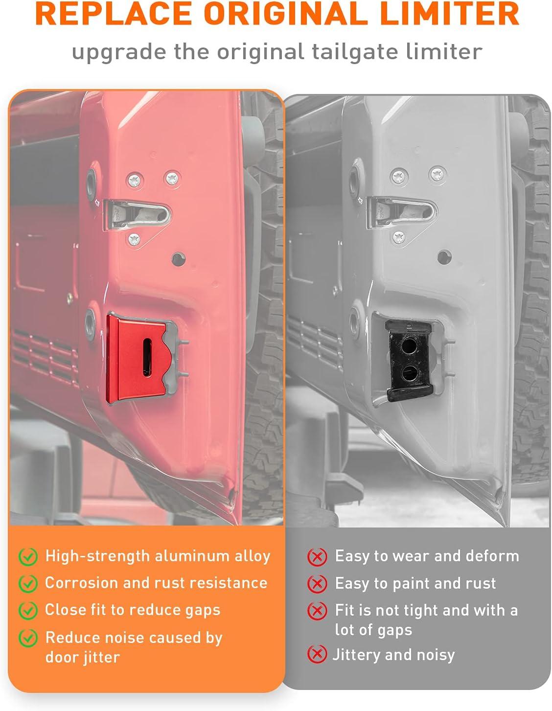 Savadicar TL01 Tailgate Limiter, Aluminum Alloy Rear Trunk Door Latch, Tail Gate Stopper for 2007-2018 Jeep Wrangler JK JKU 2-Door & 4 Door, Tailgate Replacement Accessories, Black, 1 PCs(Red)