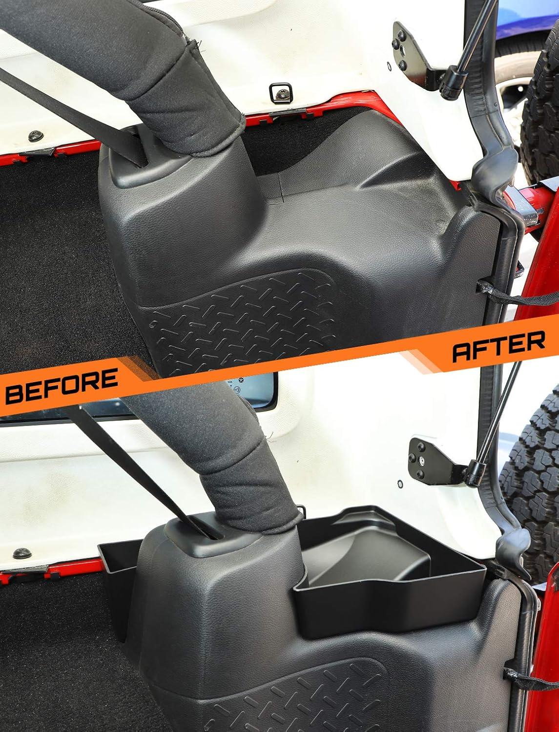 EXTRA STORAGE — Create extra storage space for your stuffs on left sides of the rear trunk by use this jeep jk accessories, convenient for place rope, toilet paper, flashlights, tools, drinks and others etc.