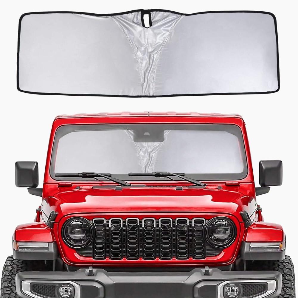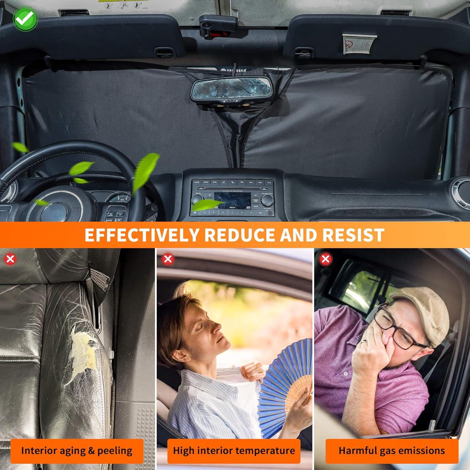 KEEP YOUR JEEP COOL — Car sun reflector for jeep wrangler can able to reflect 99.9% of the sunlight and heat entering through the windshield glass, thereby reducing the heat inside the Wrangler, making the interior of the car cooler, ensuring comfort while driving and reducing the cooling time of the air conditioner, saving fuel consumption